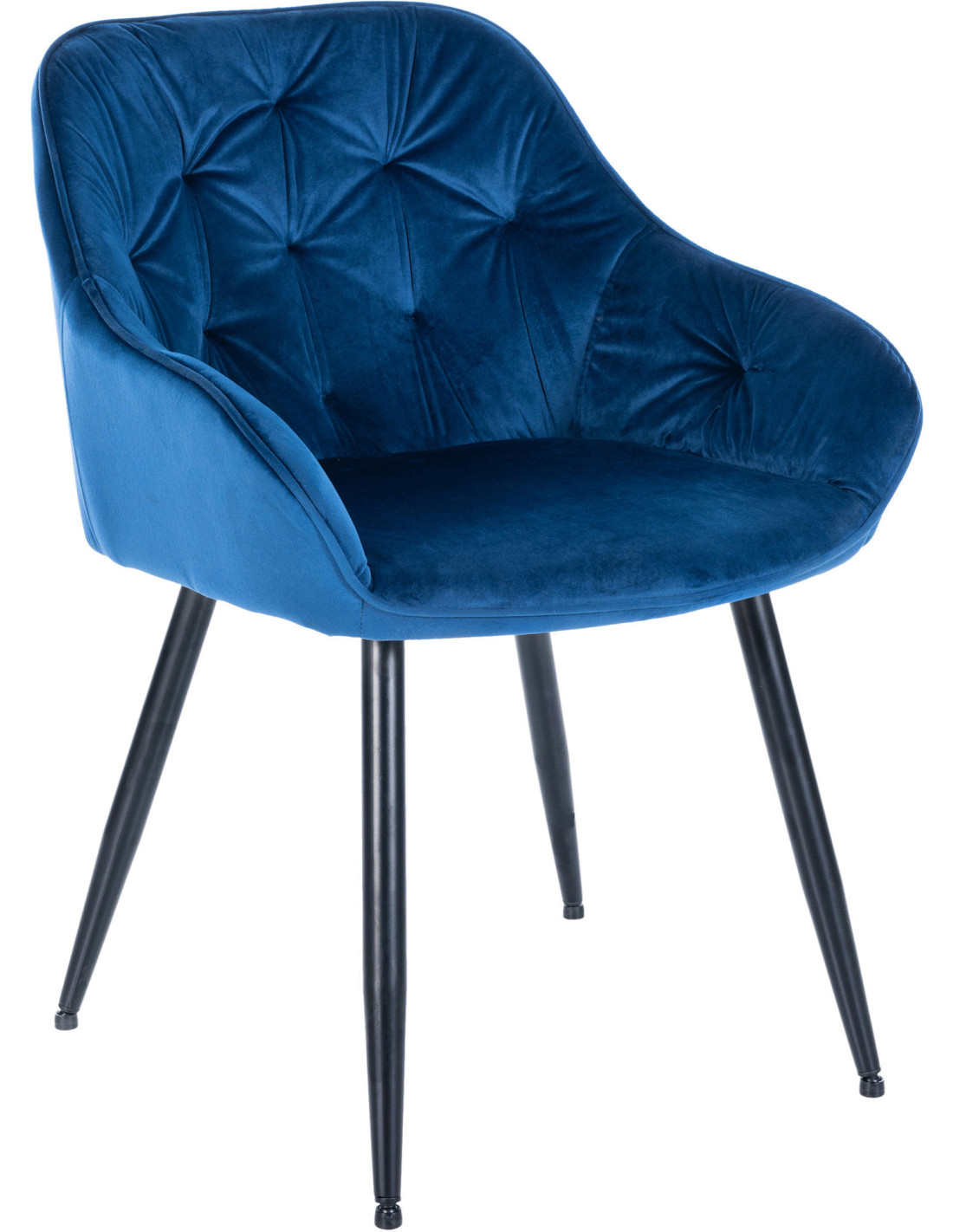 Fauteuil de table Ludivine en Velours Bleu Métal Noir Mat