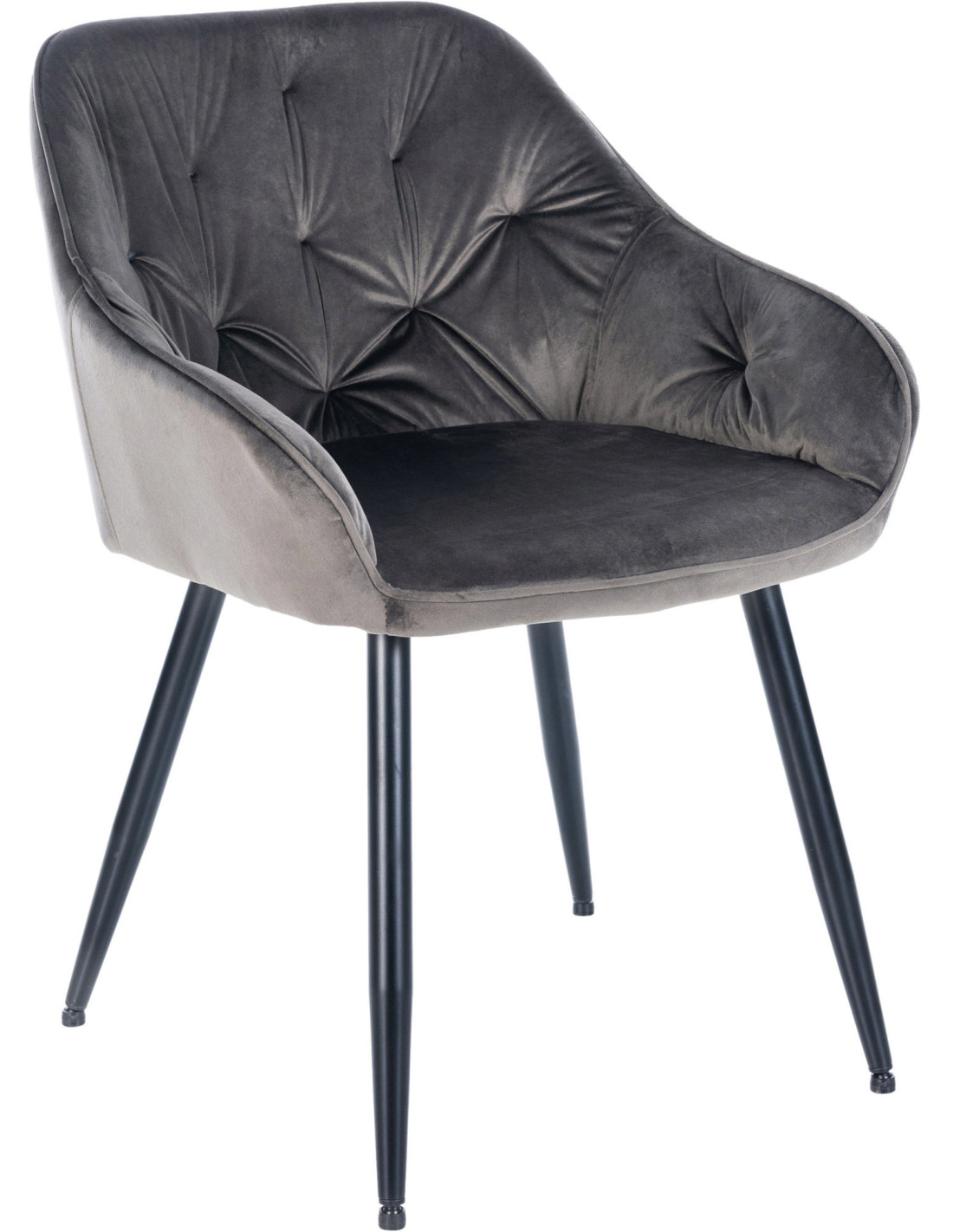 Fauteuil de table Ludivine en Velours Gris foncé Métal Noir Mat