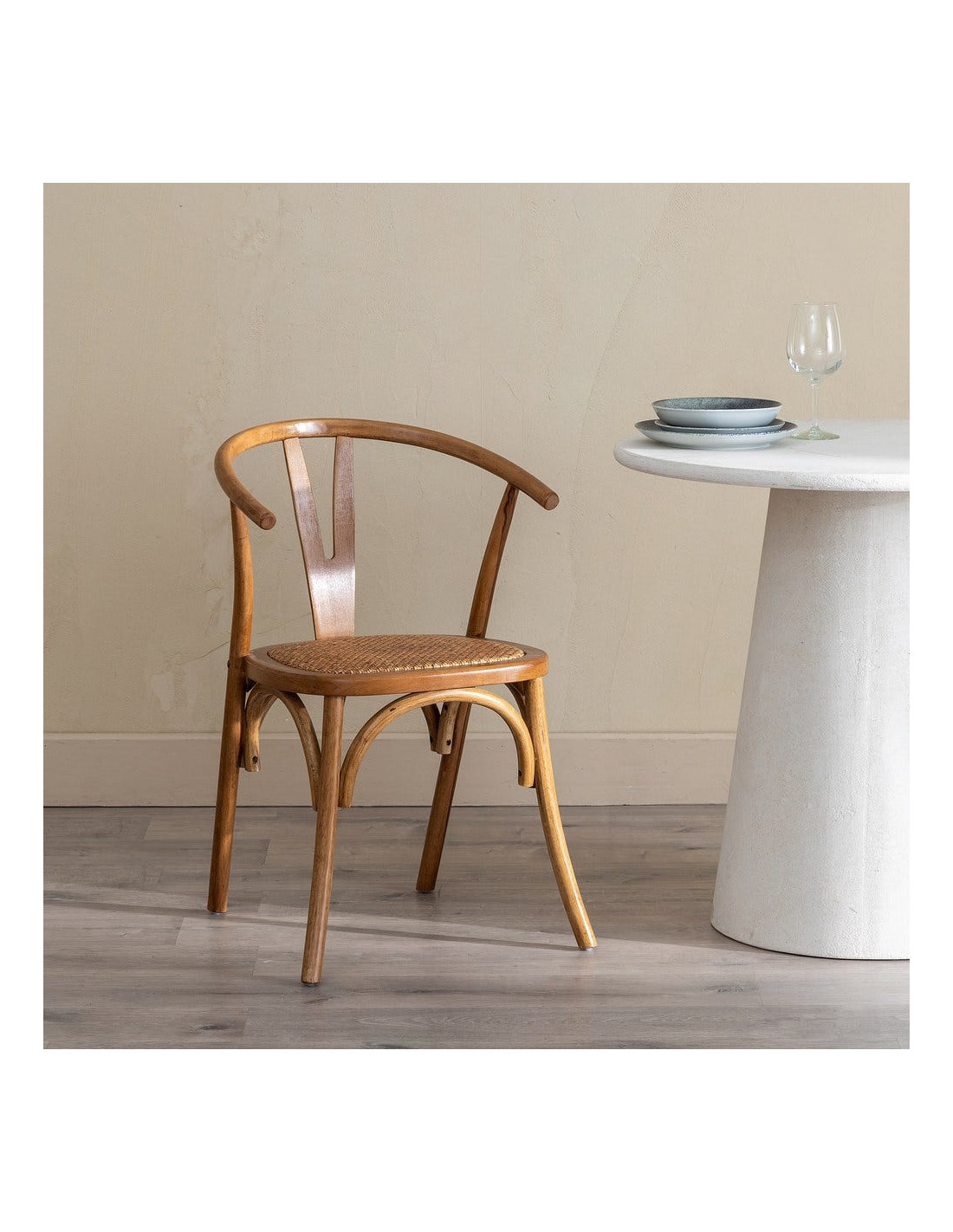 Chaise bistrot vintage Bois d'orme Miel Rotin Marron Tressé Zorvia - 1