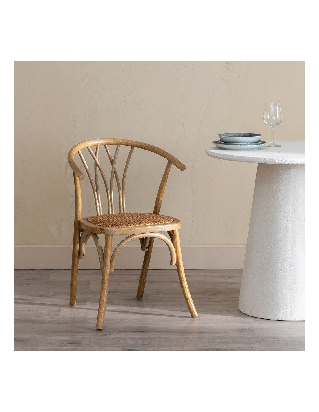 Chaise bistrot vintage Bois d'orme Naturel Rotin Marron Tressé Helira - 1