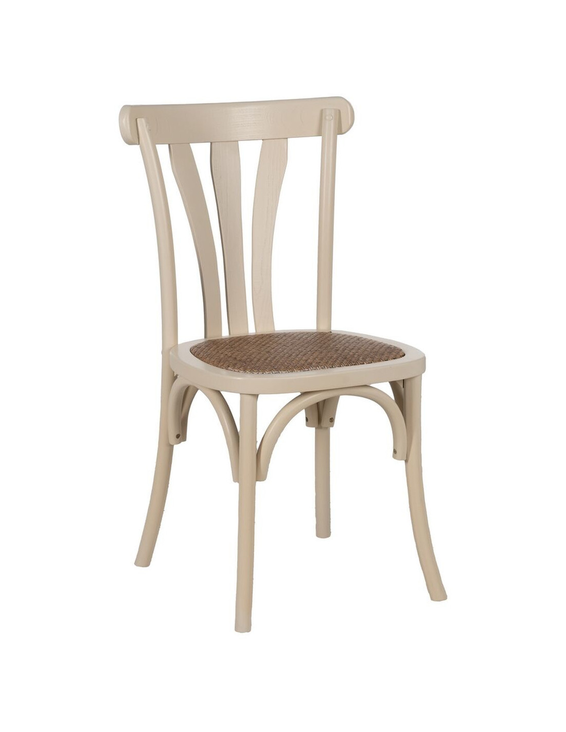 Chaise Bistrot vintage en Bois d'orme Blanc crème Rotin Naturel Cazorla