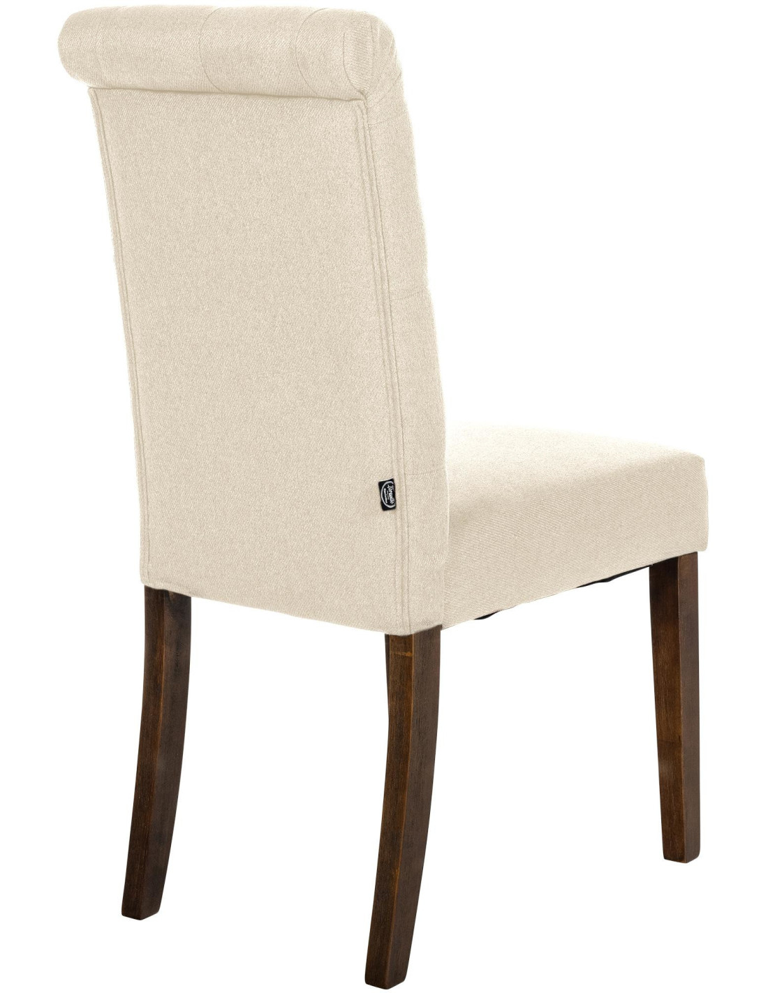 Chaise chesterfield Dossier capitonné en Tissu Blanc crème Bois Marron Clorith - 5