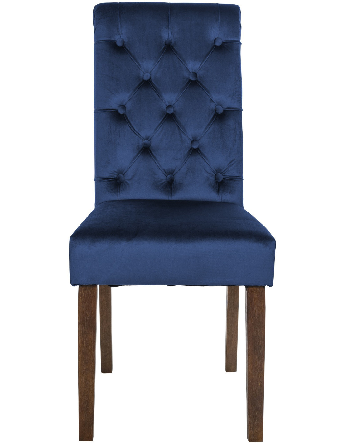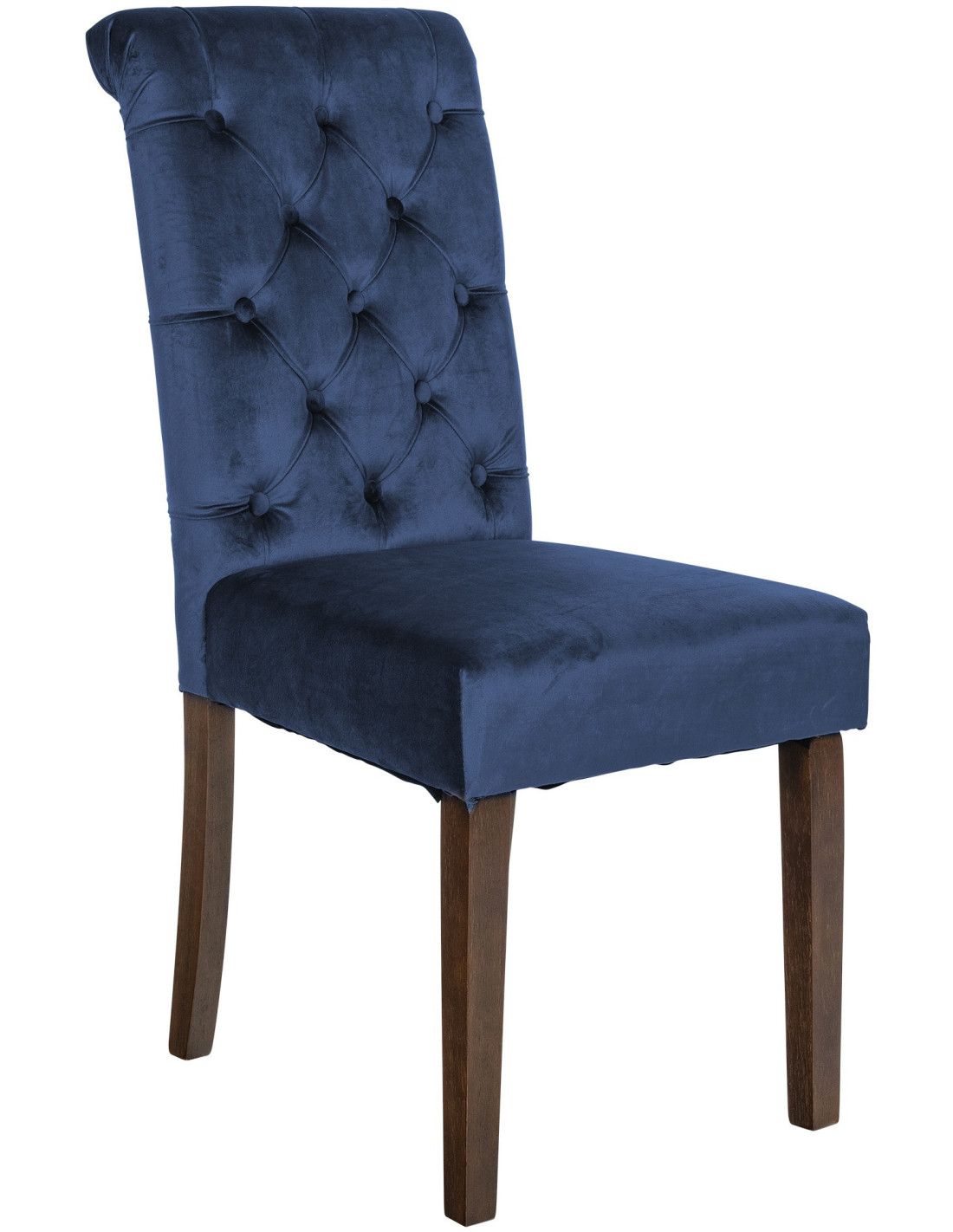 Chaise chesterfield Dossier capitonné en Velours Bleu Bois Marron Clorith