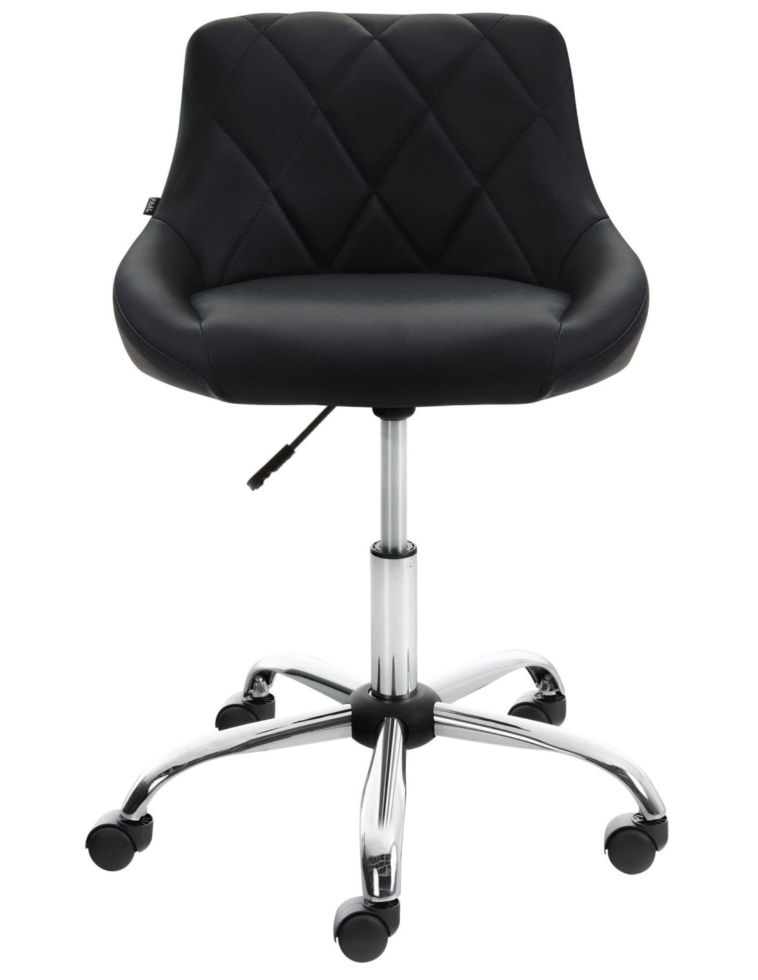 Chaise de bureau à roulettes moderne chic Polyuréthane Noir Matelassé Métal Argenté Chromé Beyra