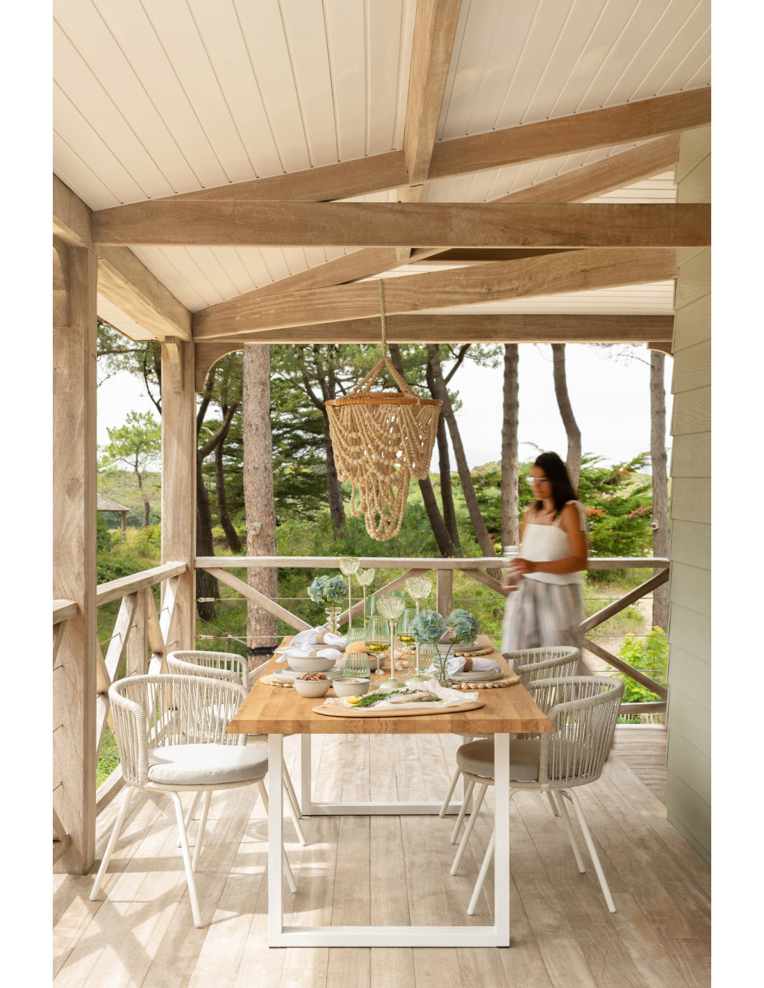 Chaise de jardin design bohème Corde Gris Métal Blanc Toa