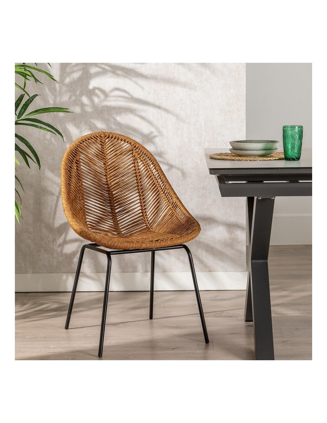 Le polyéthylène reproduit l’aspect du rotin tout en étant plus résistant aux intempéries. Associé à une structure en acier, il garantit solidité et stabilité dans le temps.