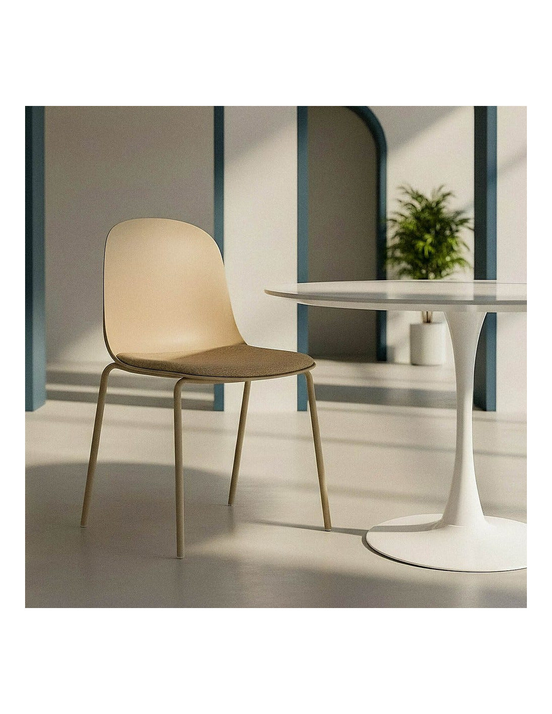 Chaise design moderne en Tissu Polypropylène Métal Beige Lunara (Lot de 4) - 1