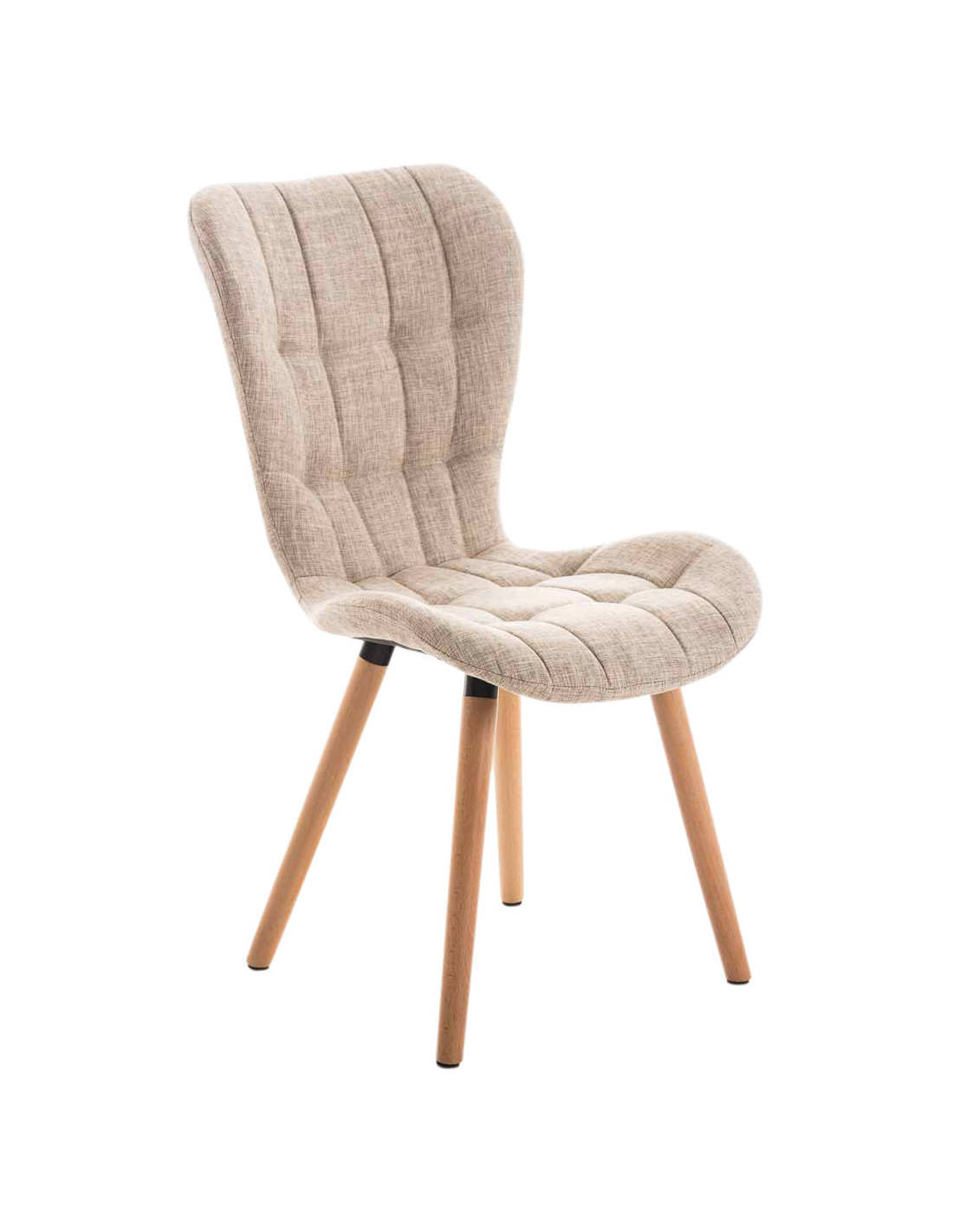 Chaise scandinave capitonnée Dossier haut en Tissu Blanc crème Bois Naturel Sindy - 1