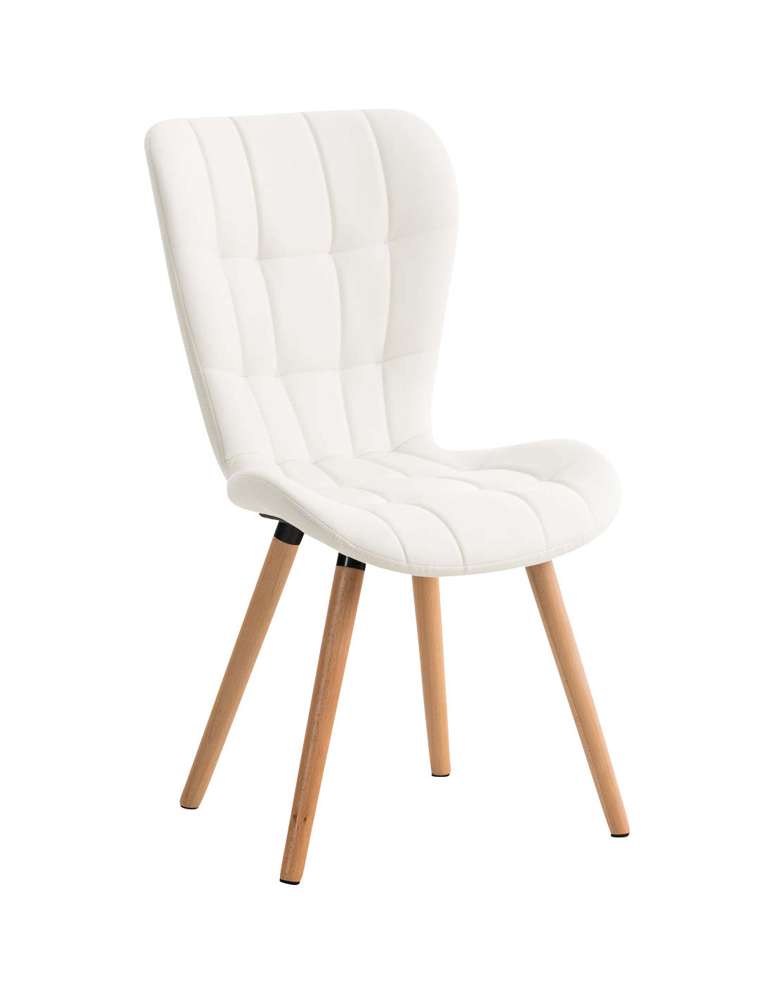 Chaise scandinave capitonnée Dossier haut en Polyuréthane Blanc Bois Naturel Sindy