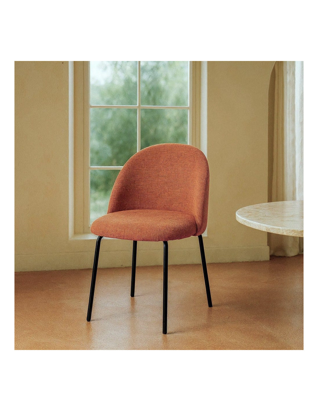 Chaise haut de gamme en Tissu Orange citrouille Métal Noir Munira (Lot de 2)