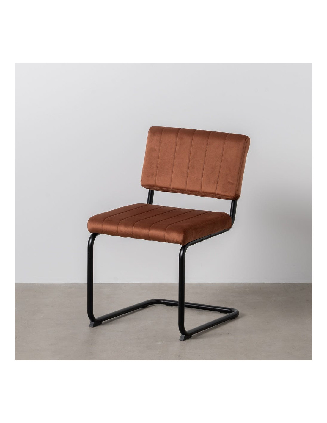 Chaise industrielle chic Luge Tissu Terracotta Matelassé Métal Noir Nivira