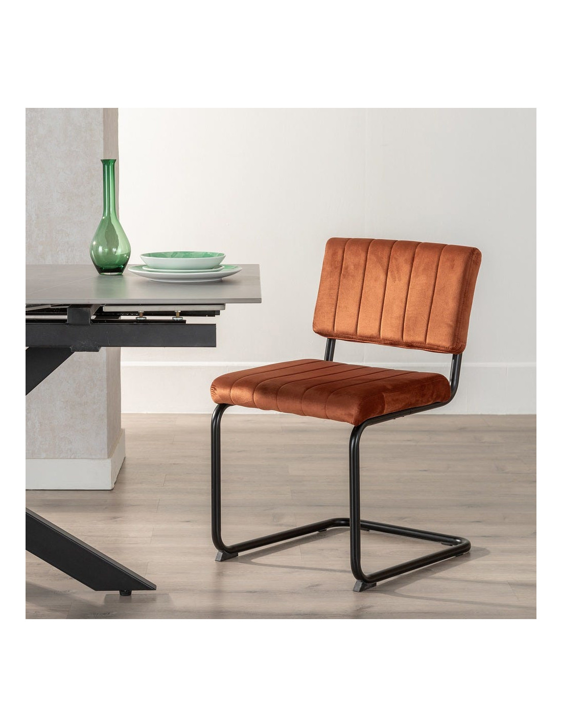 Chaise industrielle chic Luge Tissu Terracotta Matelassé Métal Noir Nivira - 1