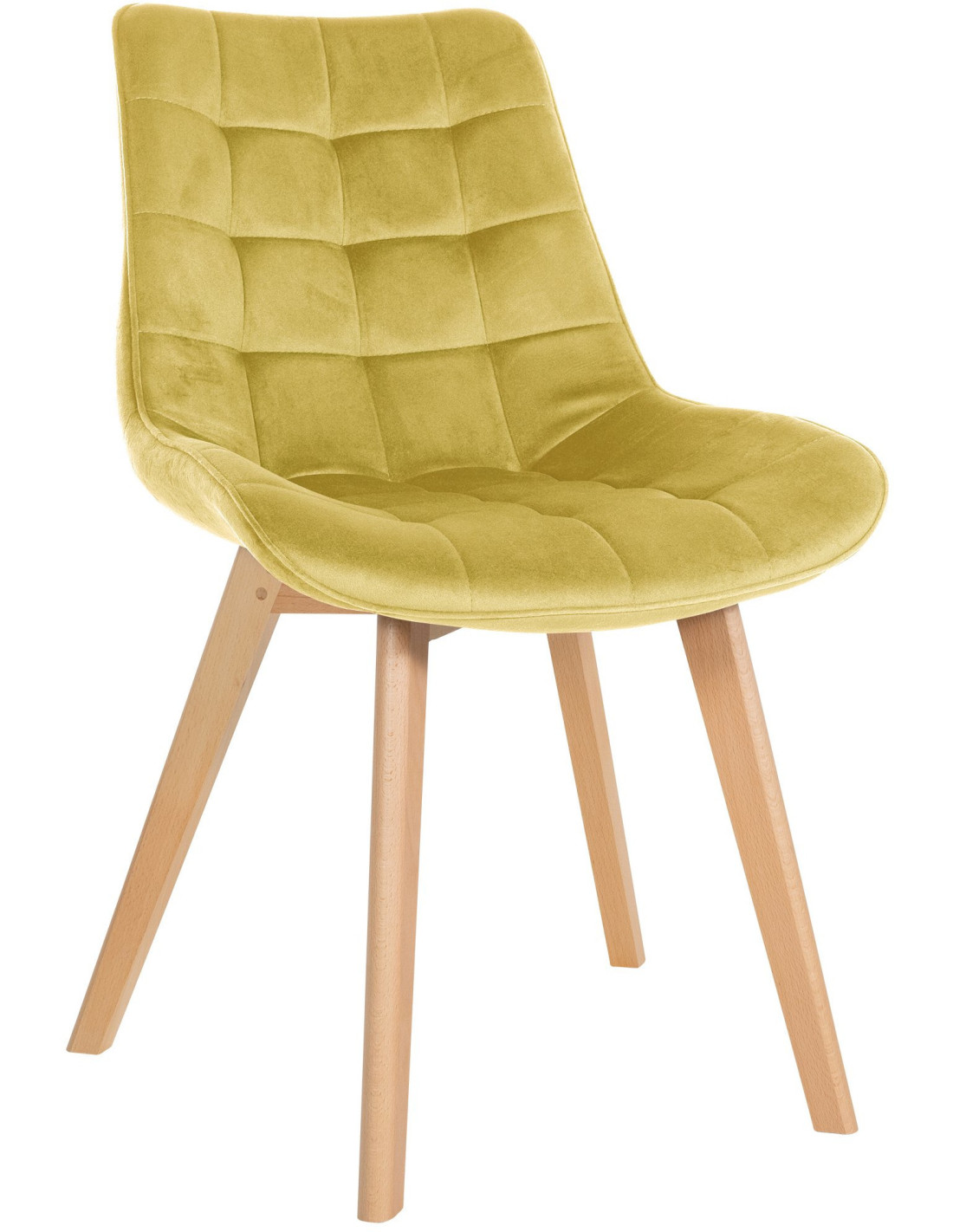 Chaise matelassée scandinave en Velours Jaune Bois Naturel Laura