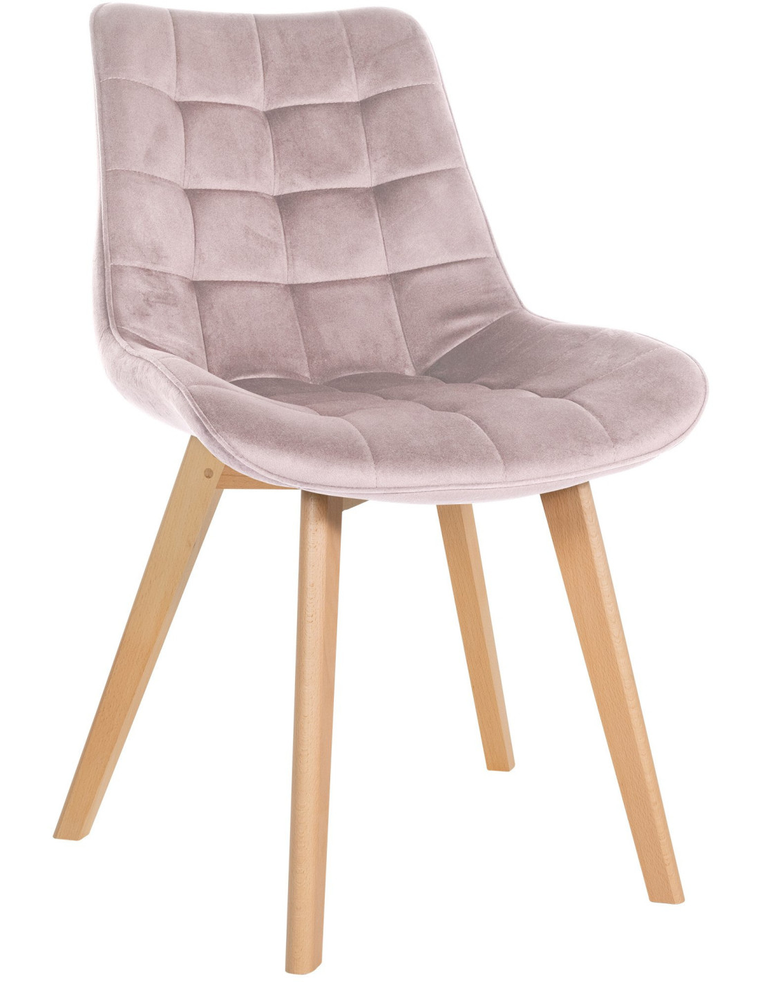 Chaise matelassée scandinave en Velours Rose Bois Naturel Laura - 1