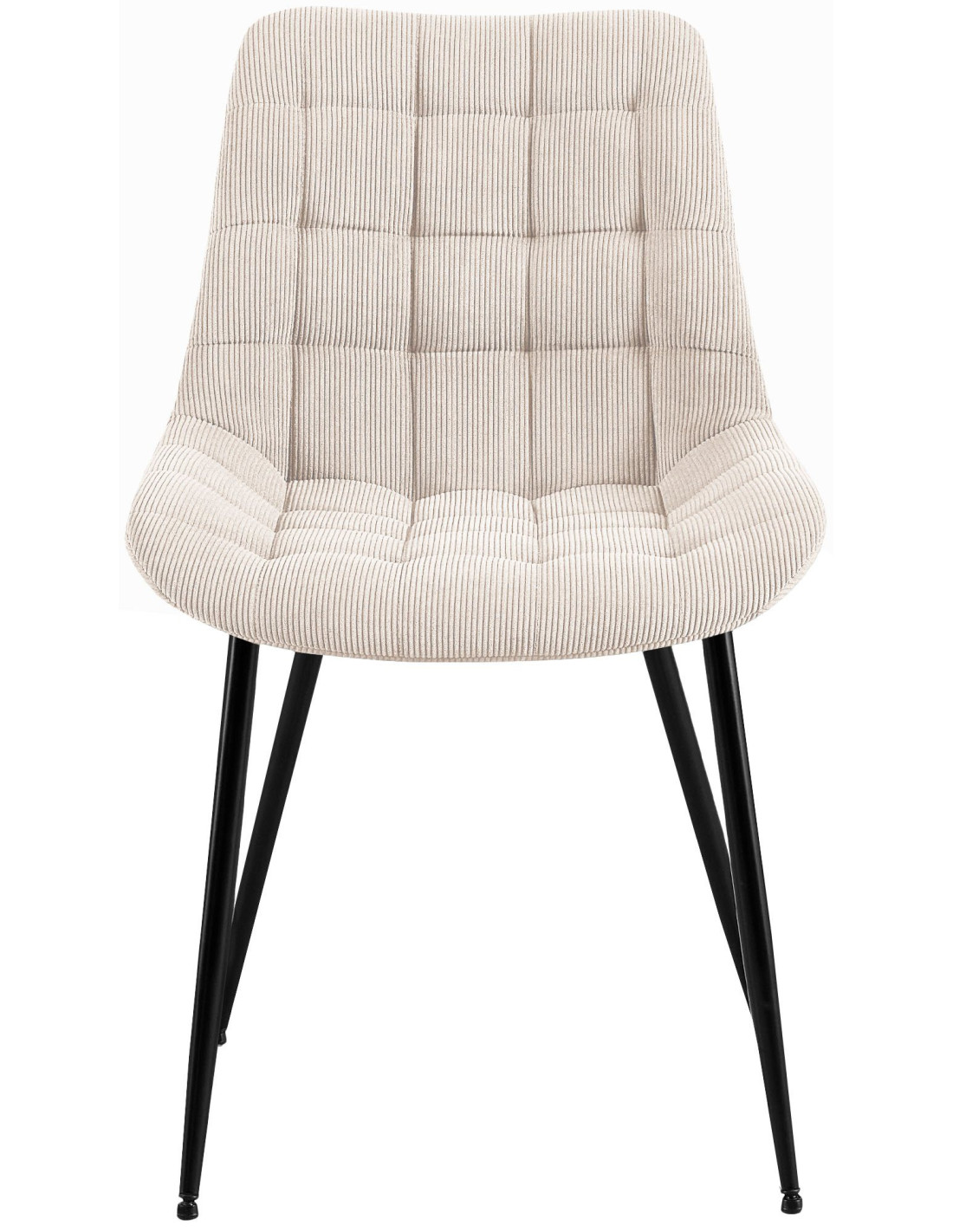 Chaise matelassée moderne Velours côtelé Blanc crème Métal Noir Mat Brioni