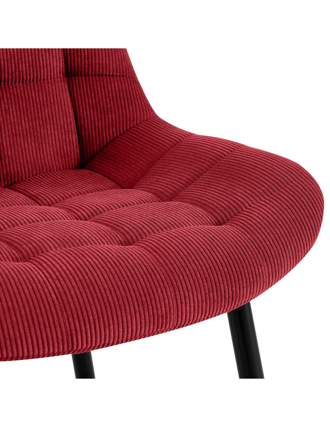 Chaise matelassée moderne Velours côtelé Rouge bordeaux Métal Noir Mat Brioni - 2