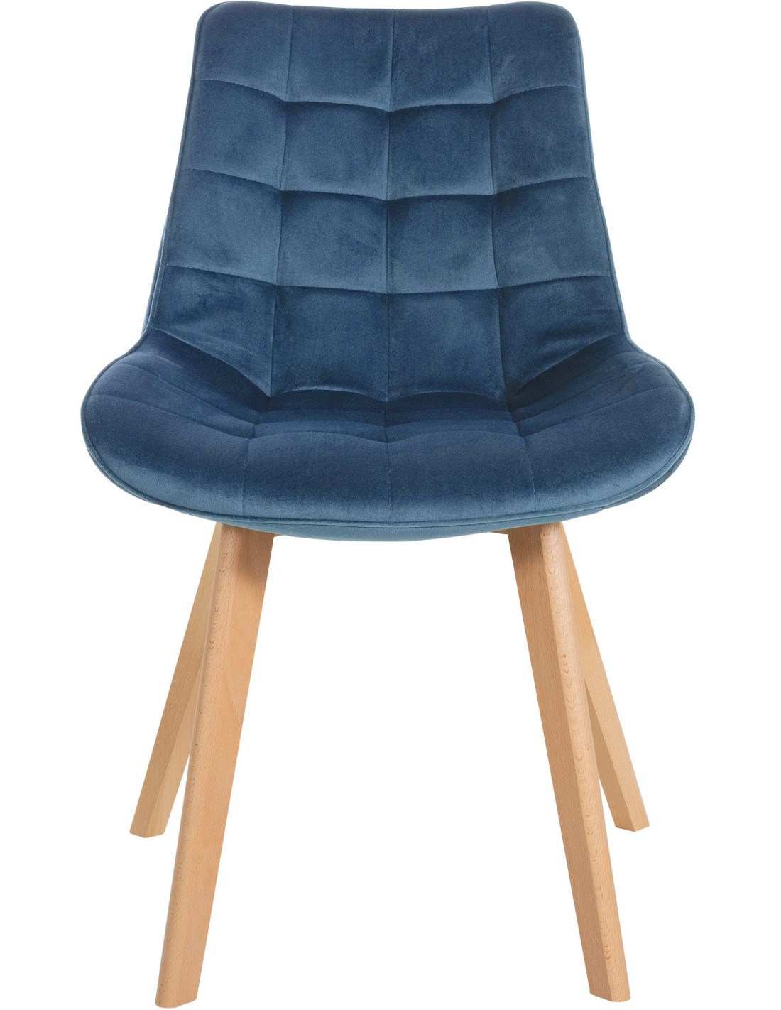 Chaise matelassée scandinave en Velours Bleu Bois Naturel Laura - 1