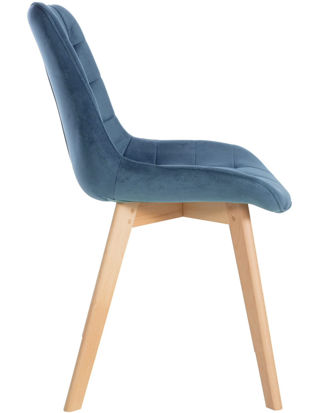 Chaise matelassée scandinave en Velours Bleu Bois Naturel Laura - 5