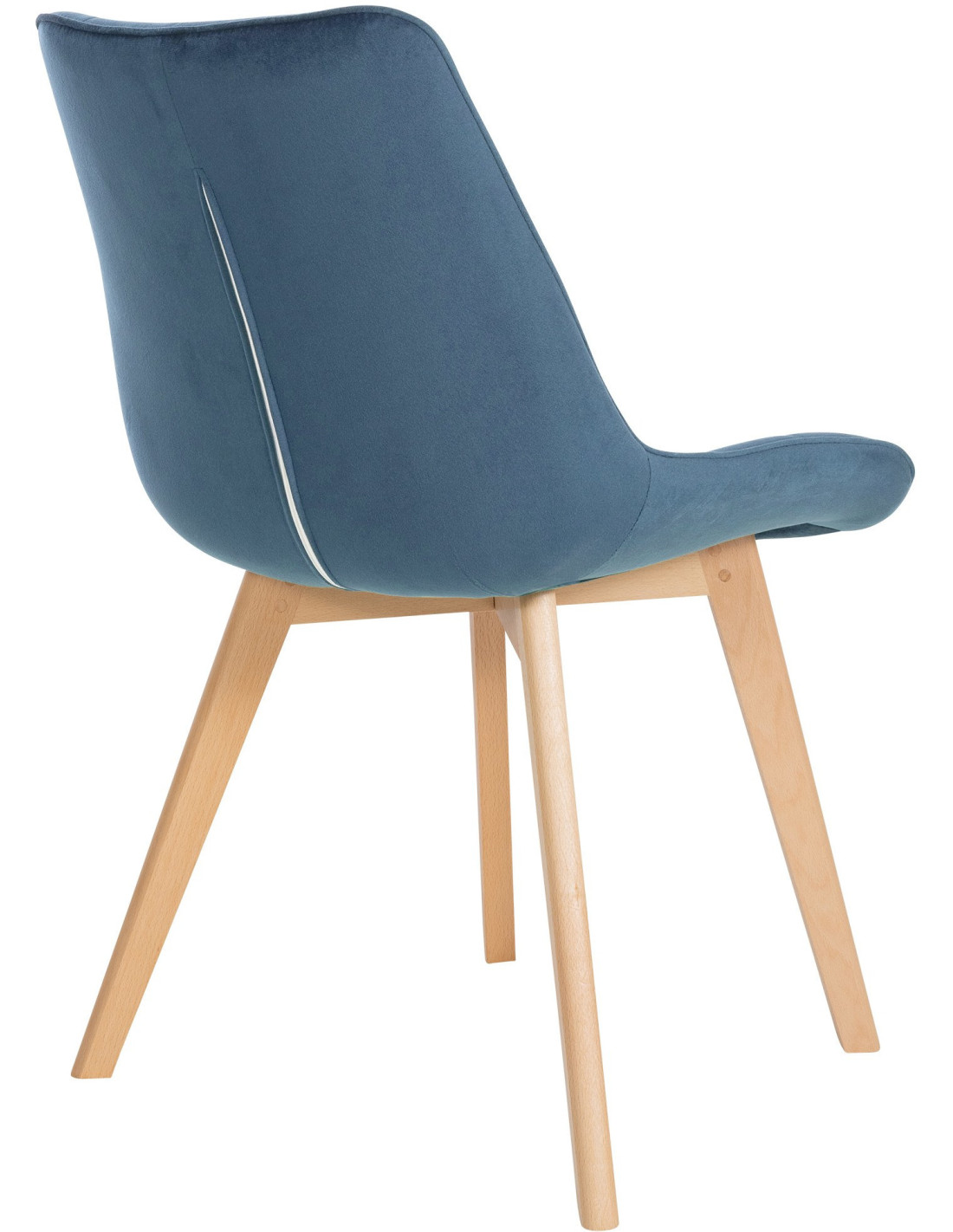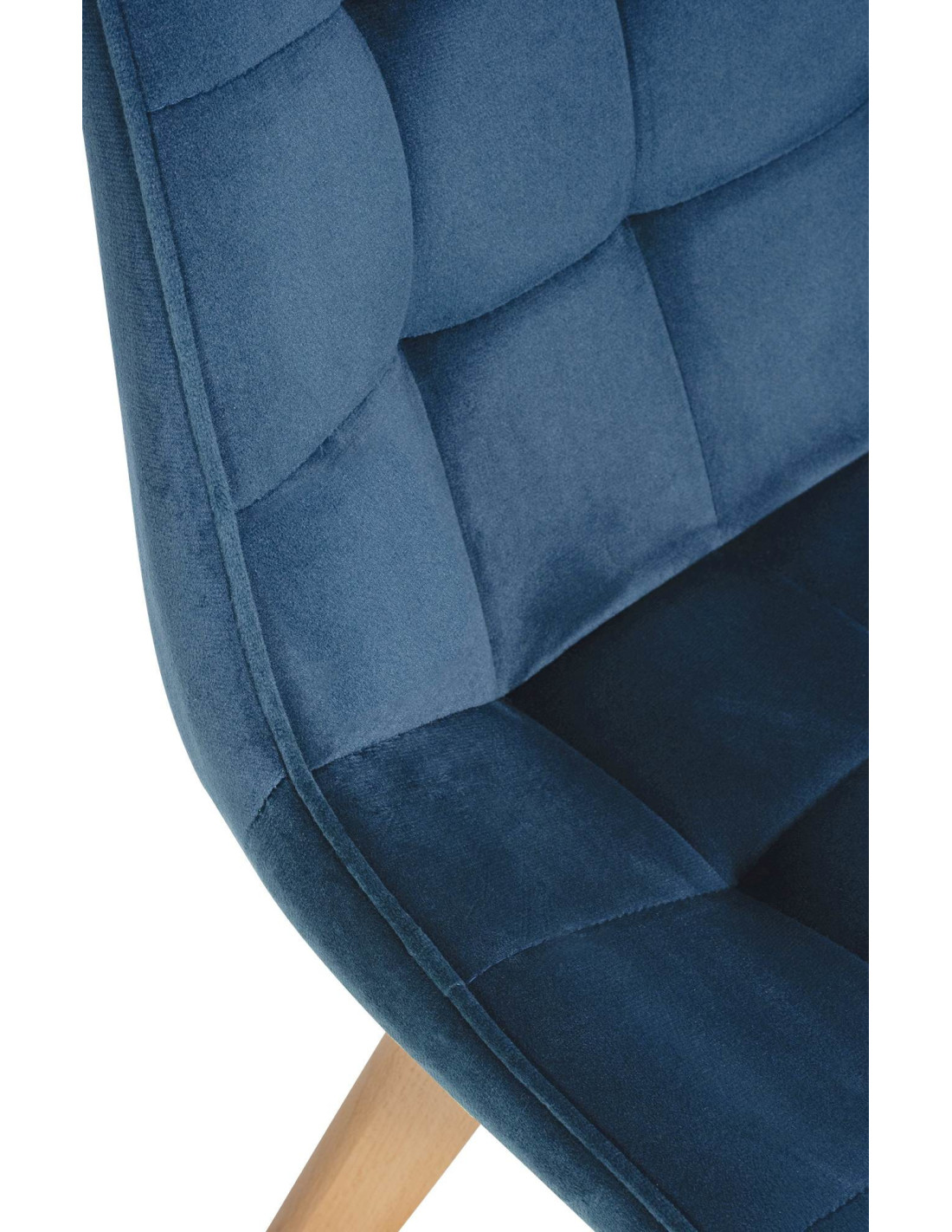 Chaise matelassée scandinave en Velours Bleu Bois Naturel Laura - 4