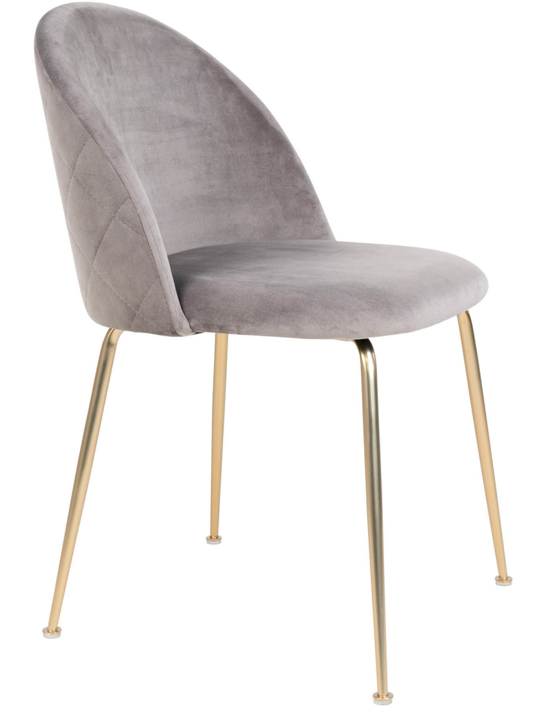 Chaise moderne arrondie Velours Gris Métal Doré Effet laiton Geneve (Lot de 2)