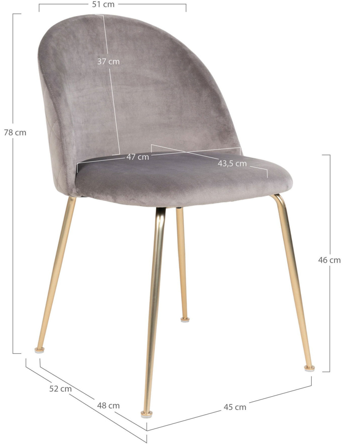 Chaise moderne arrondie Velours Gris Métal Doré Effet laiton Geneve (Lot de 2) - 10