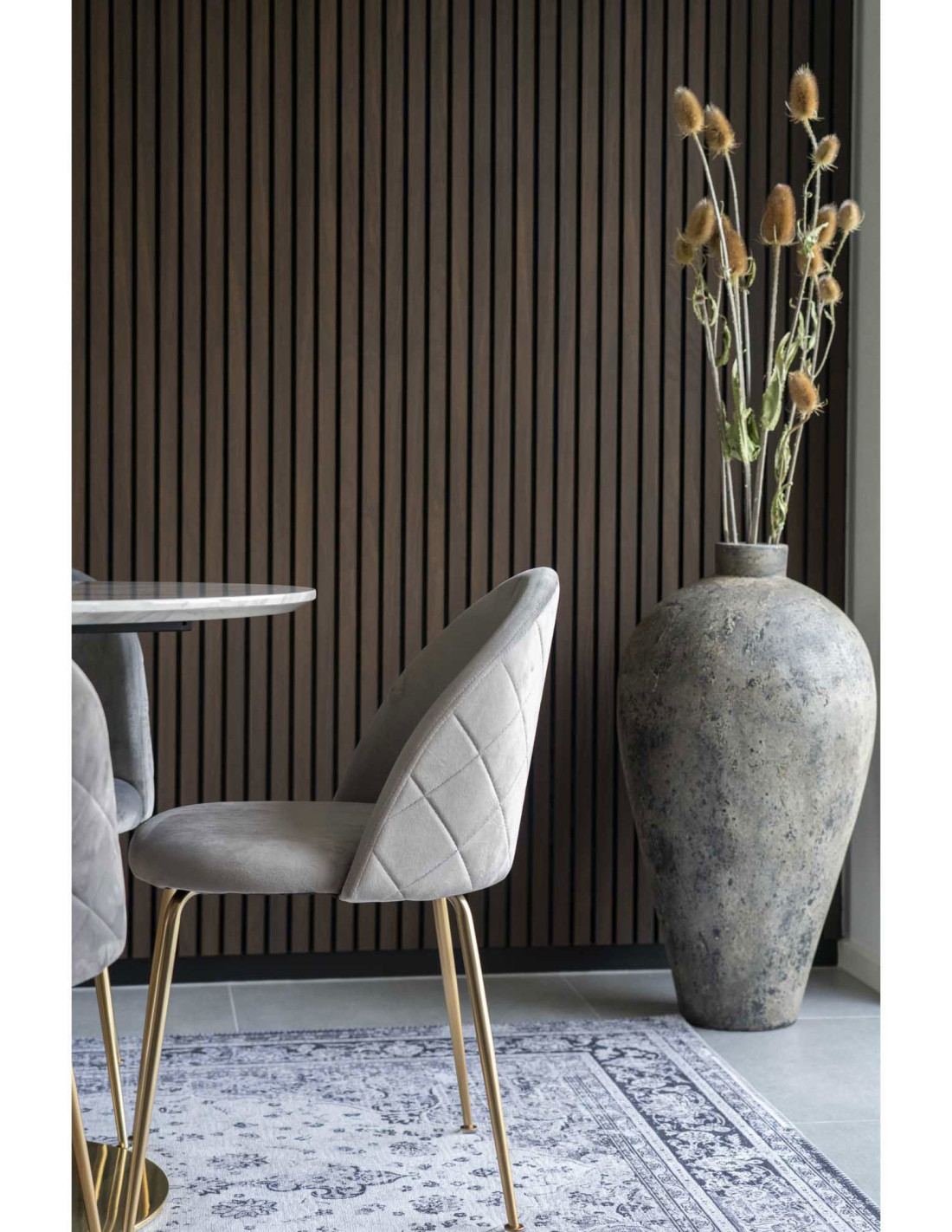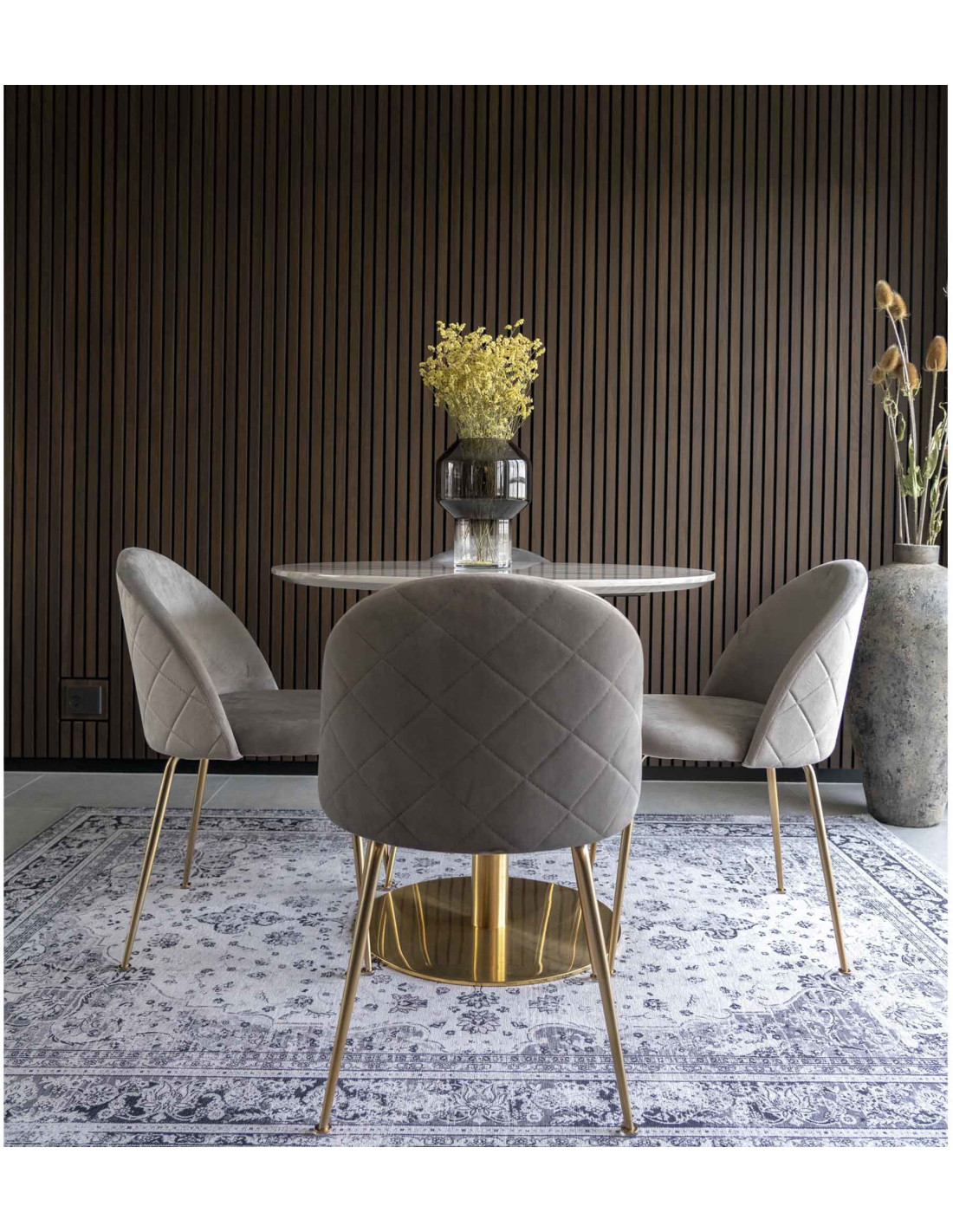 Chaise moderne arrondie Velours Gris Métal Doré Effet laiton Geneve (Lot de 2) - 5