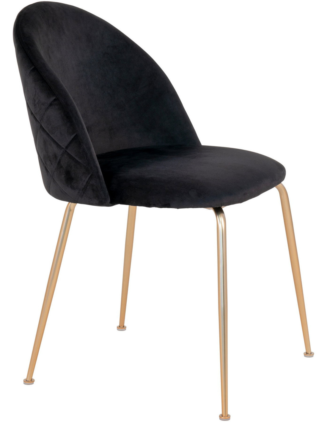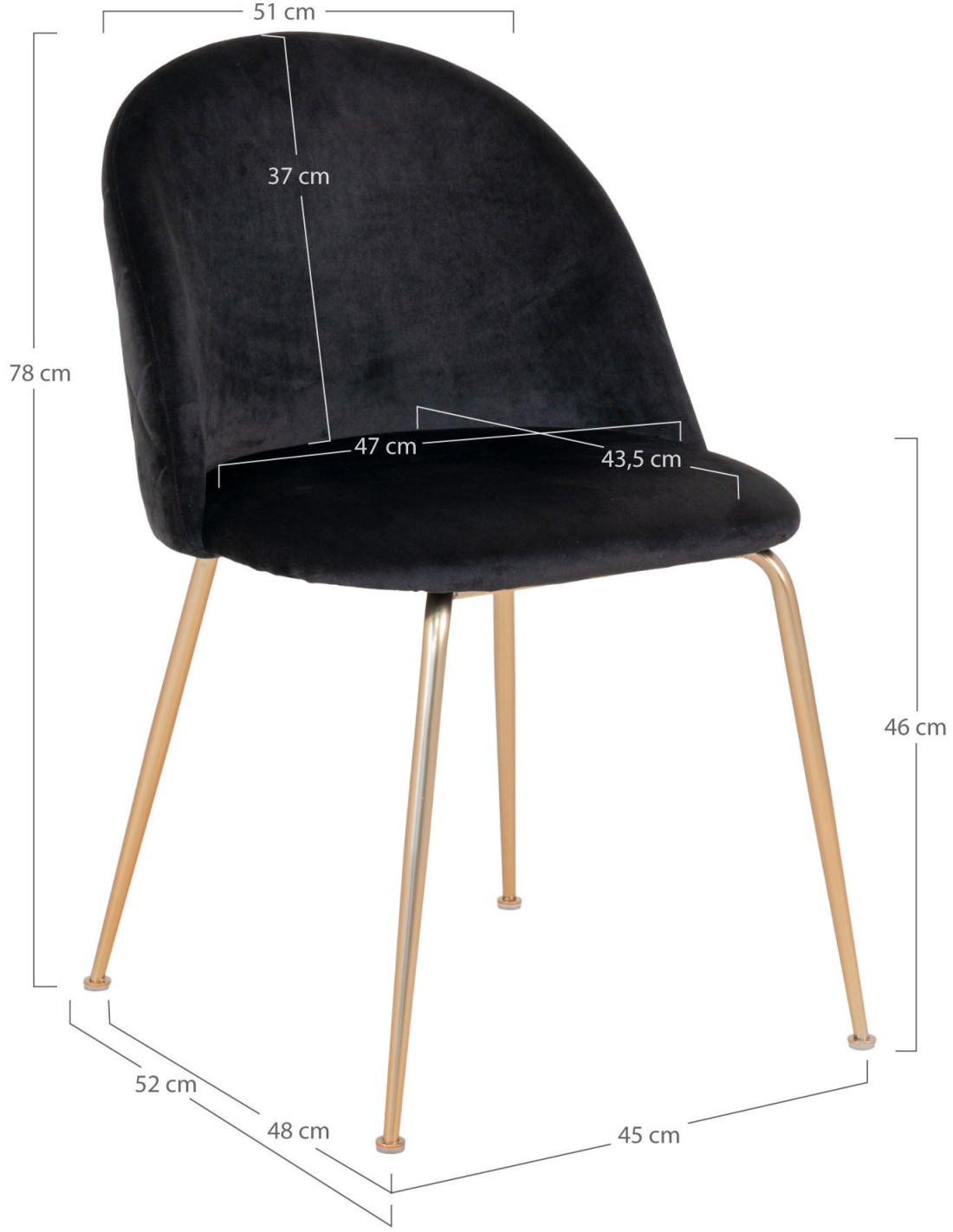 Chaise moderne arrondie Velours Noir Métal Doré Effet laiton Geneve (Lot de 2)