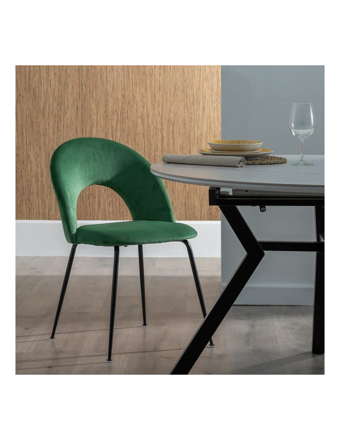 Chaise moderne arrondie Velours Vert Métal Noir Dorvia (Lot de 4) - 1