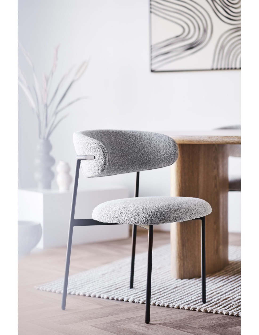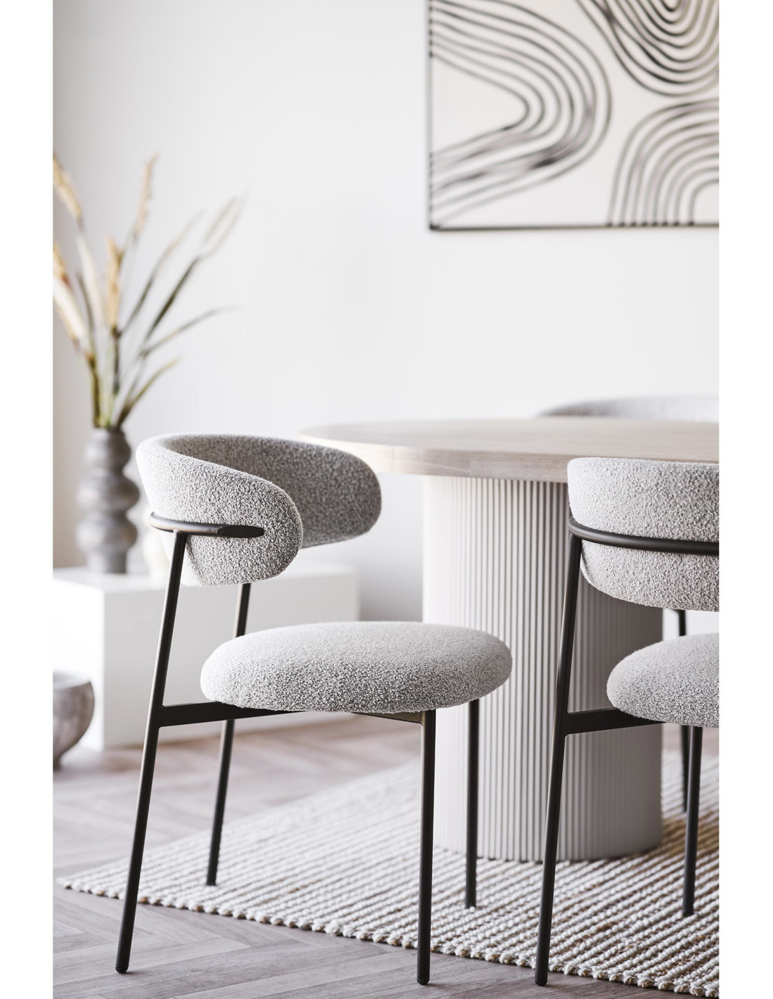 Chaise moderne bouclette Tissu Sable Bouclé Métal Noir Mira (Lot de 2)