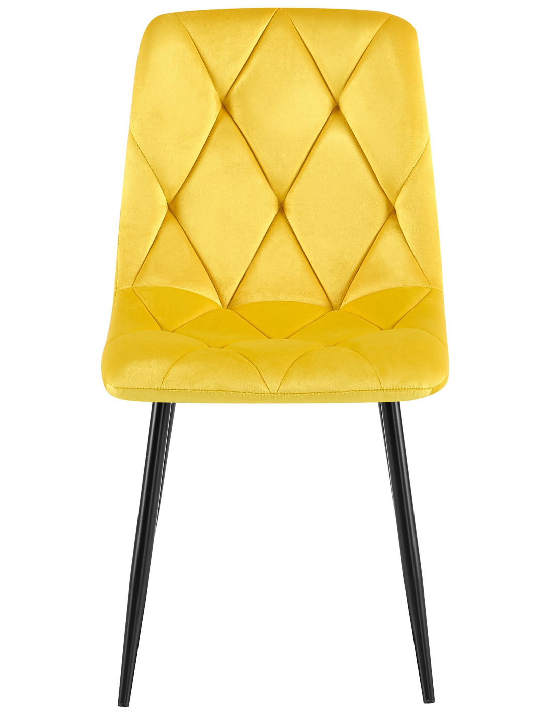 Chaise moderne chic matelassée Velours Jaune Motif losanges Métal Noir Mat Jasen