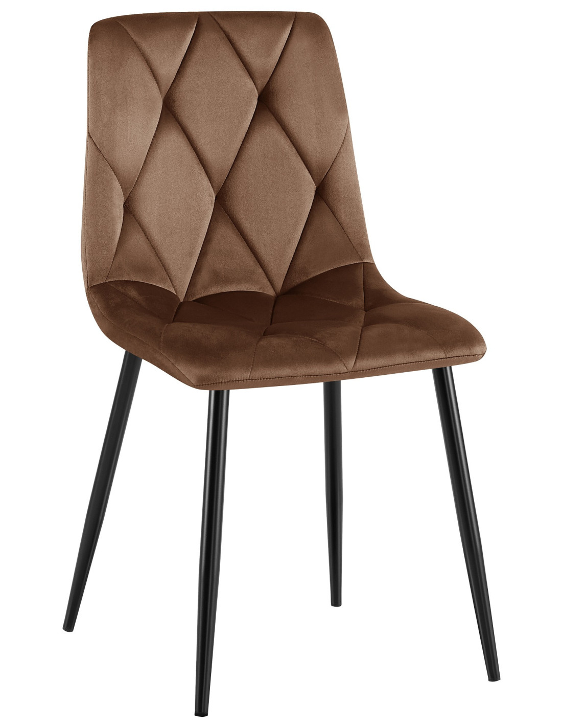Chaise moderne chic matelassée Velours Marron Motif losanges Métal Noir Mat Jasen - 1