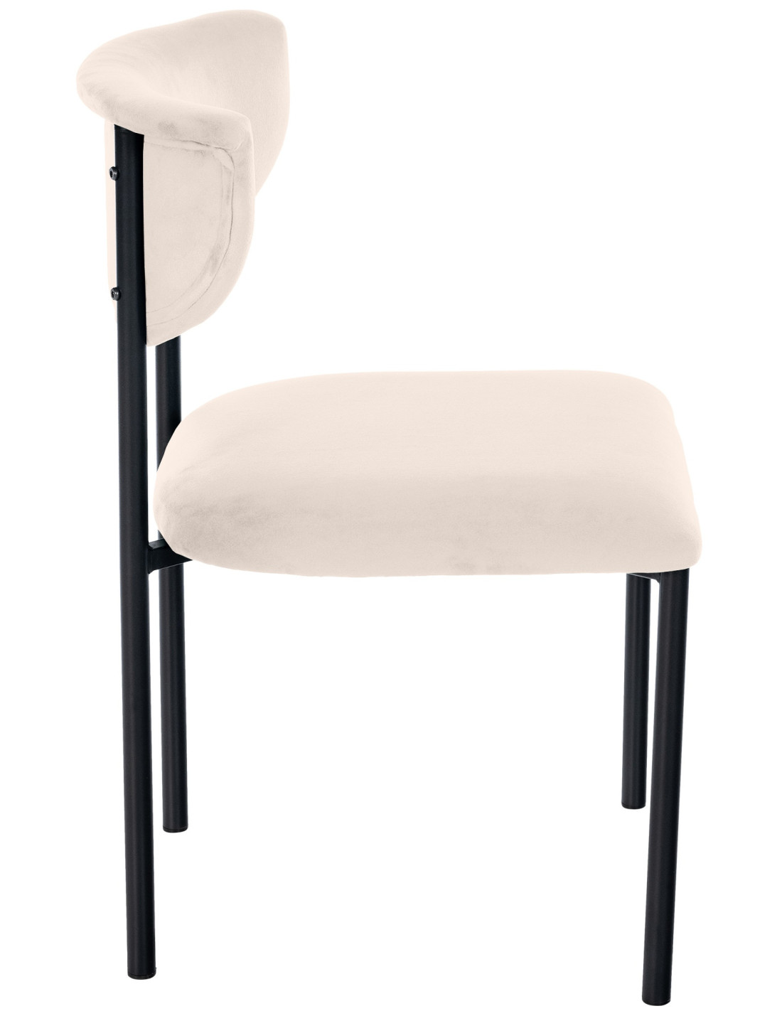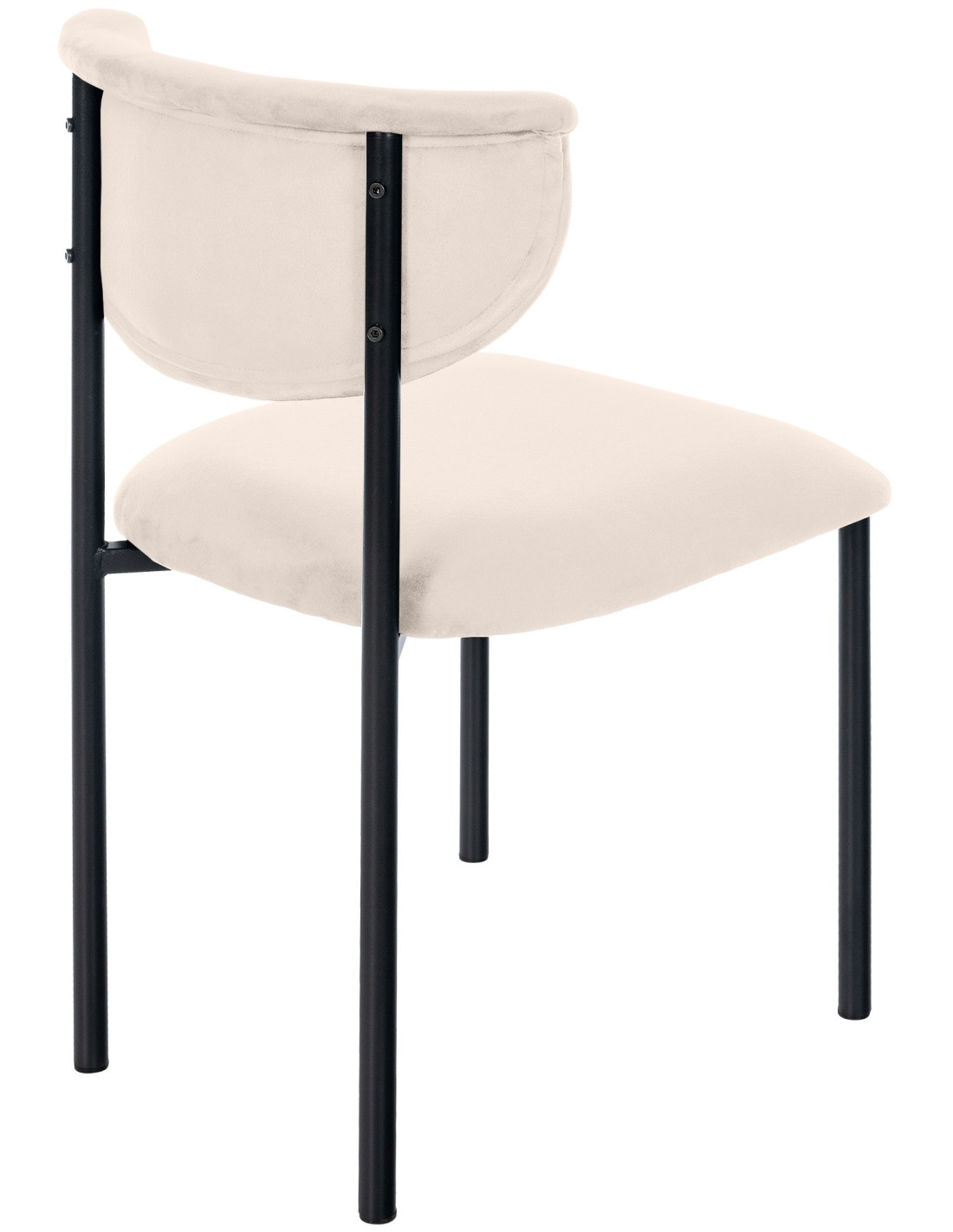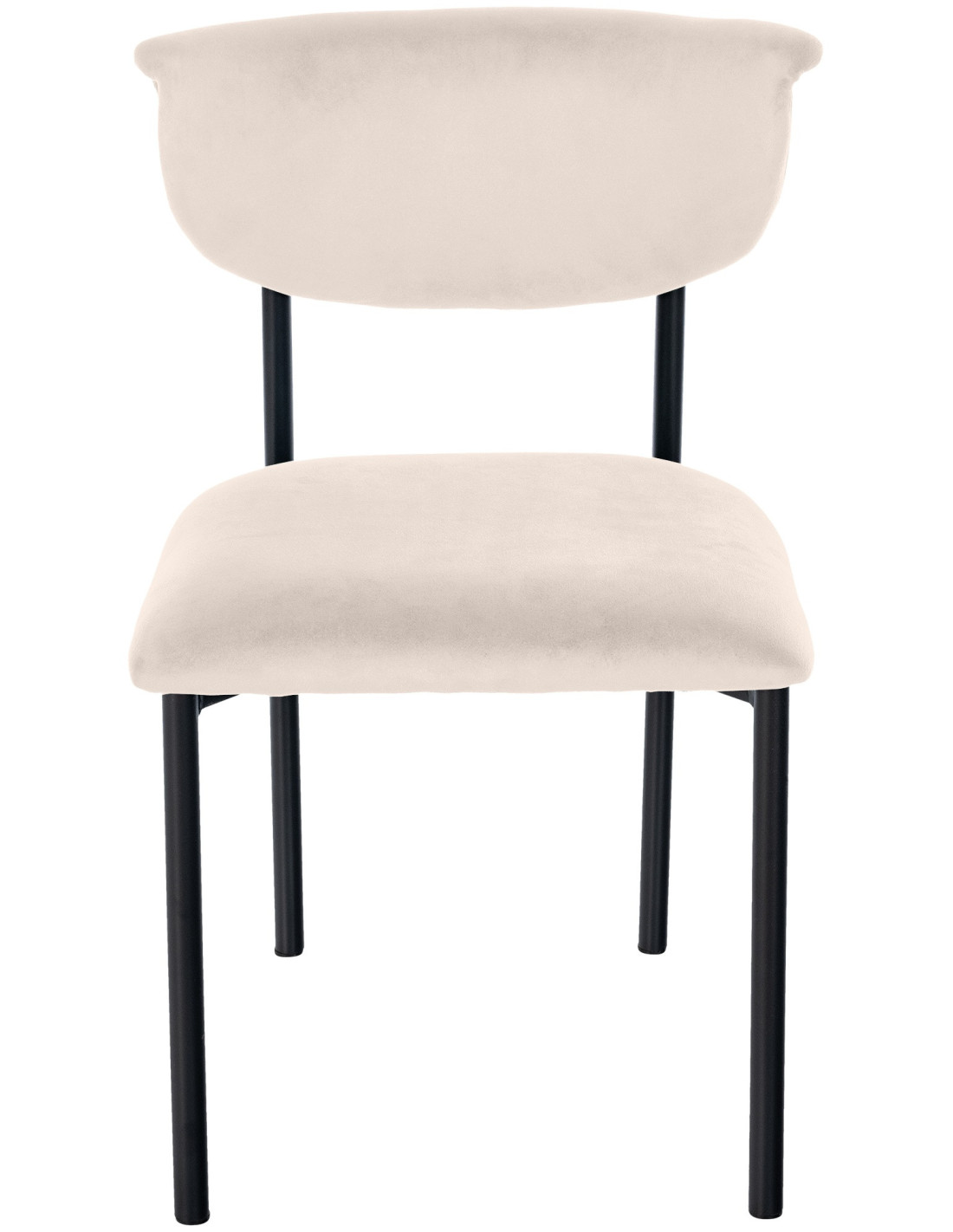 Une teinte douce, lumineuse, presque enveloppante. La chaise Mareo en velours blanc crème apporte de la clarté et une élégance discrète à votre intérieur.