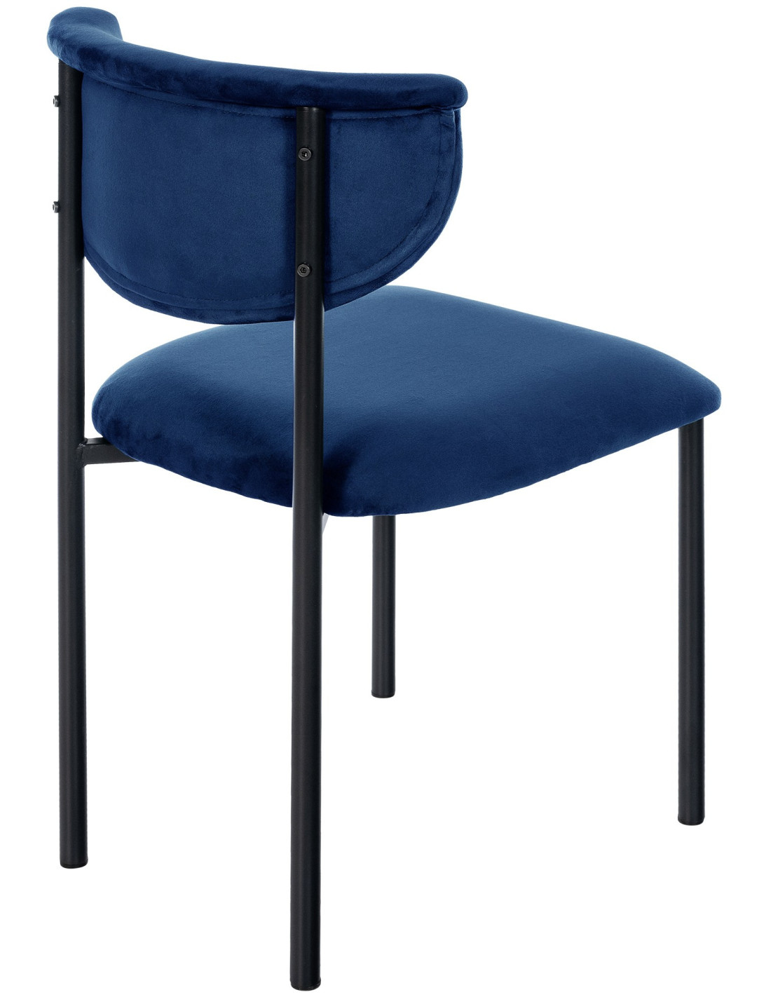 Avec son velours bleu foncé et sa structure en métal noir, la chaise Mareo propose une esthétique plus affirmée et contrastée. Elle joue sur la profondeur de la couleur et la finesse des lignes pour créer une assise moderne et élégante.