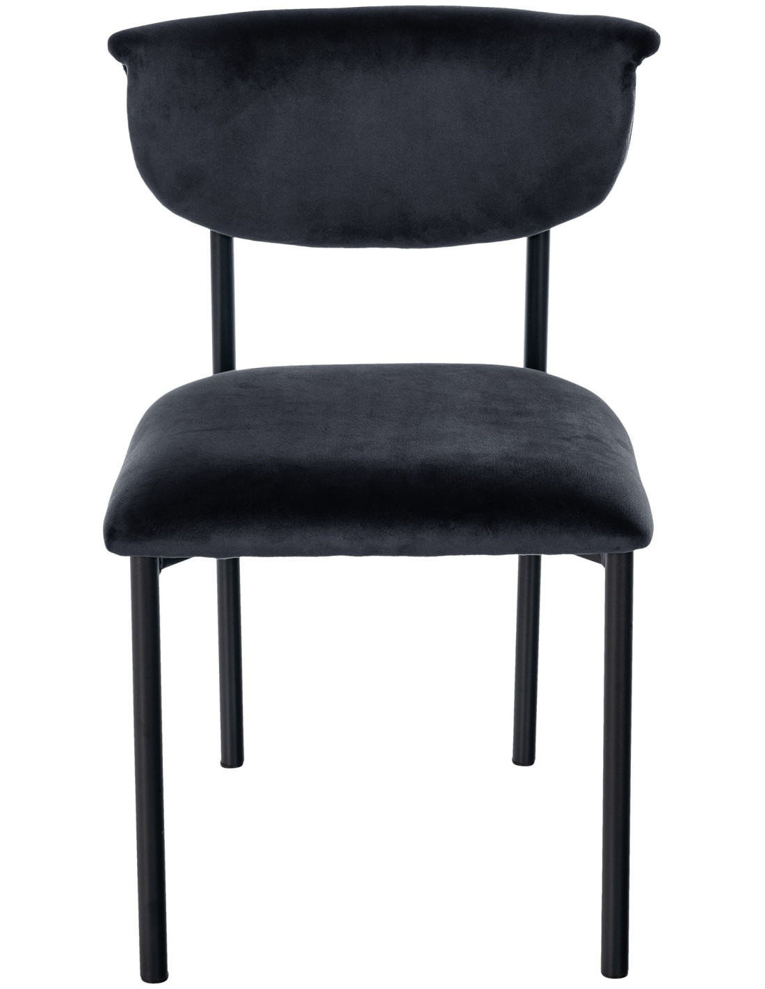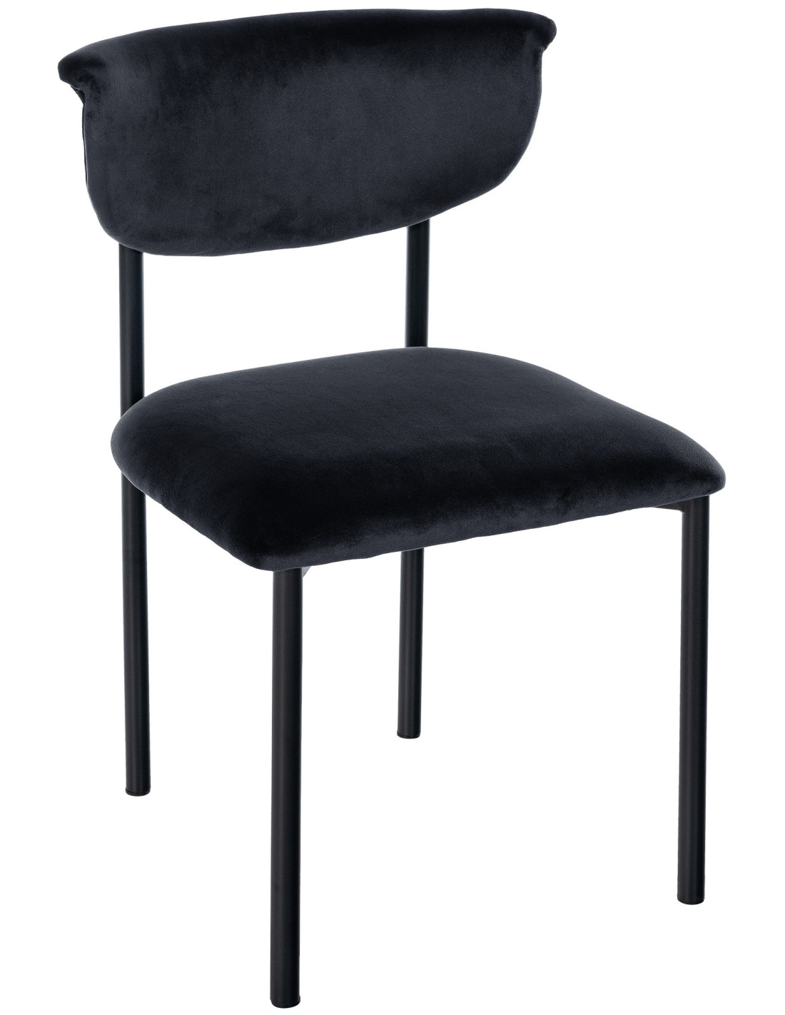 Une chaise qui mise sur l’essentiel avec élégance. Mareo associe un velours noir profond à une structure fine en métal pour créer une assise confortable et visuellement équilibrée.