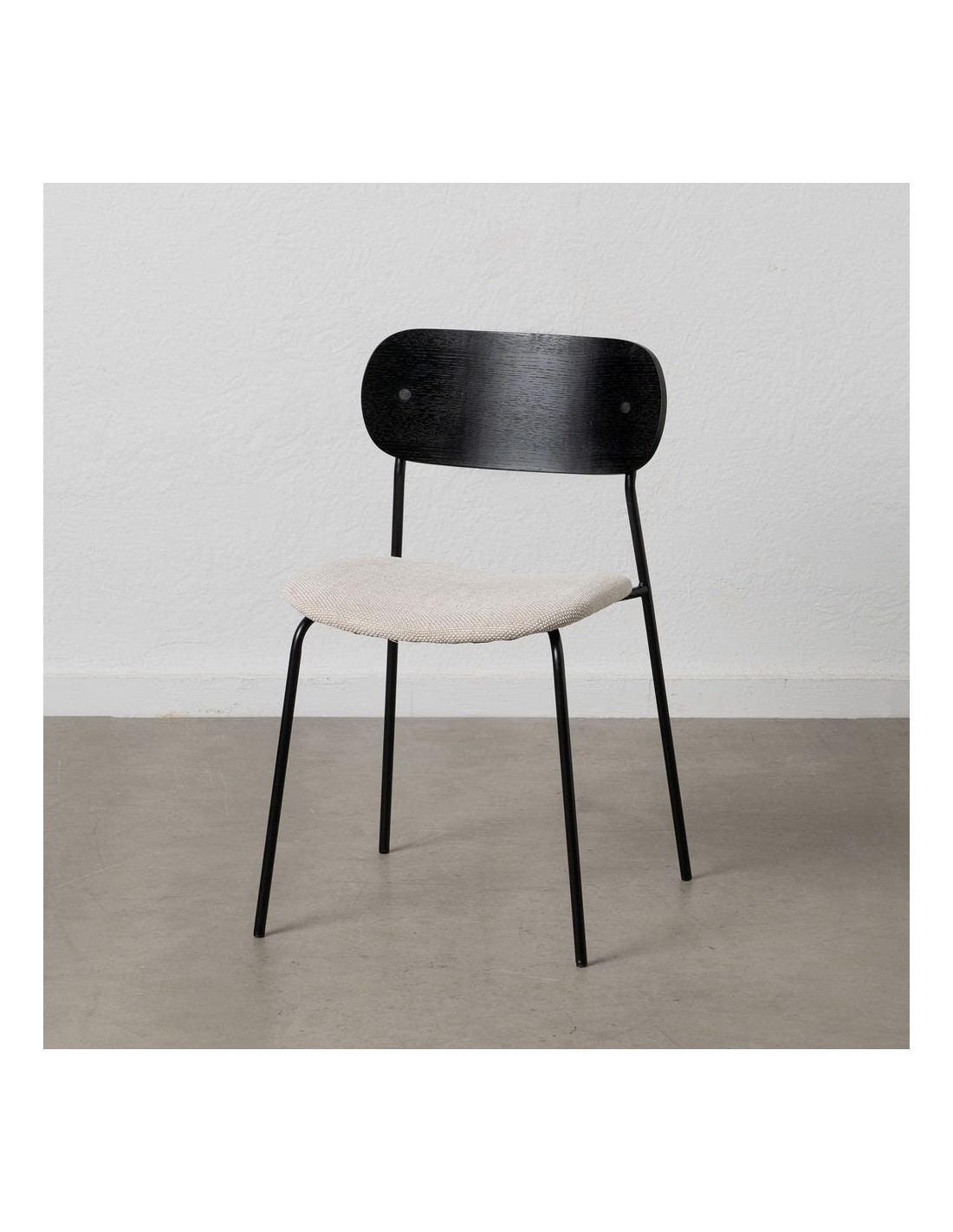 Chaise moderne d'écolier en Tissu Blanc Plywood Noir Métal Noir Nelda (Lot de 4) - 1
