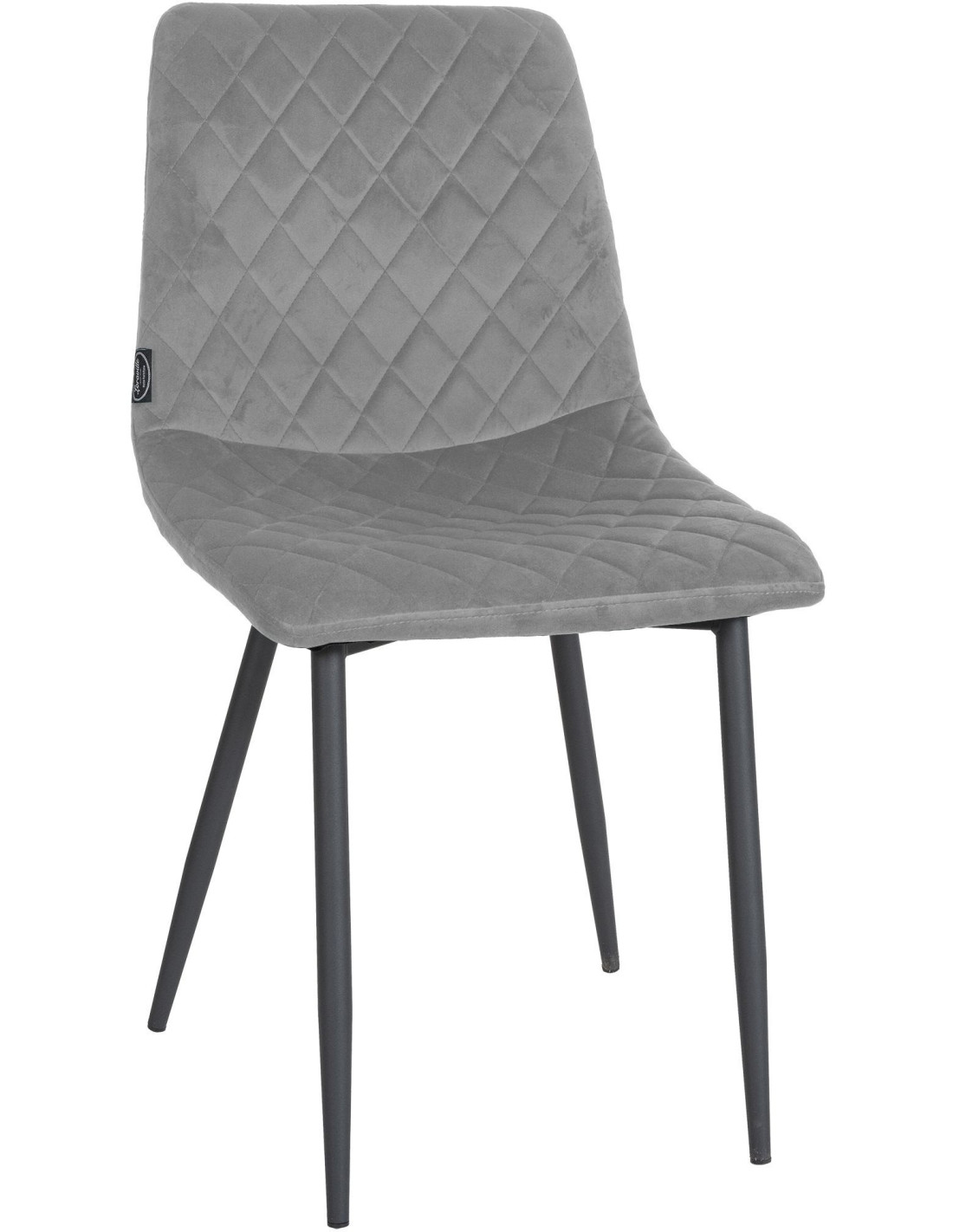 Chaise moderne en Velours Gris clair Motif losange Métal Noir Mat Maxine