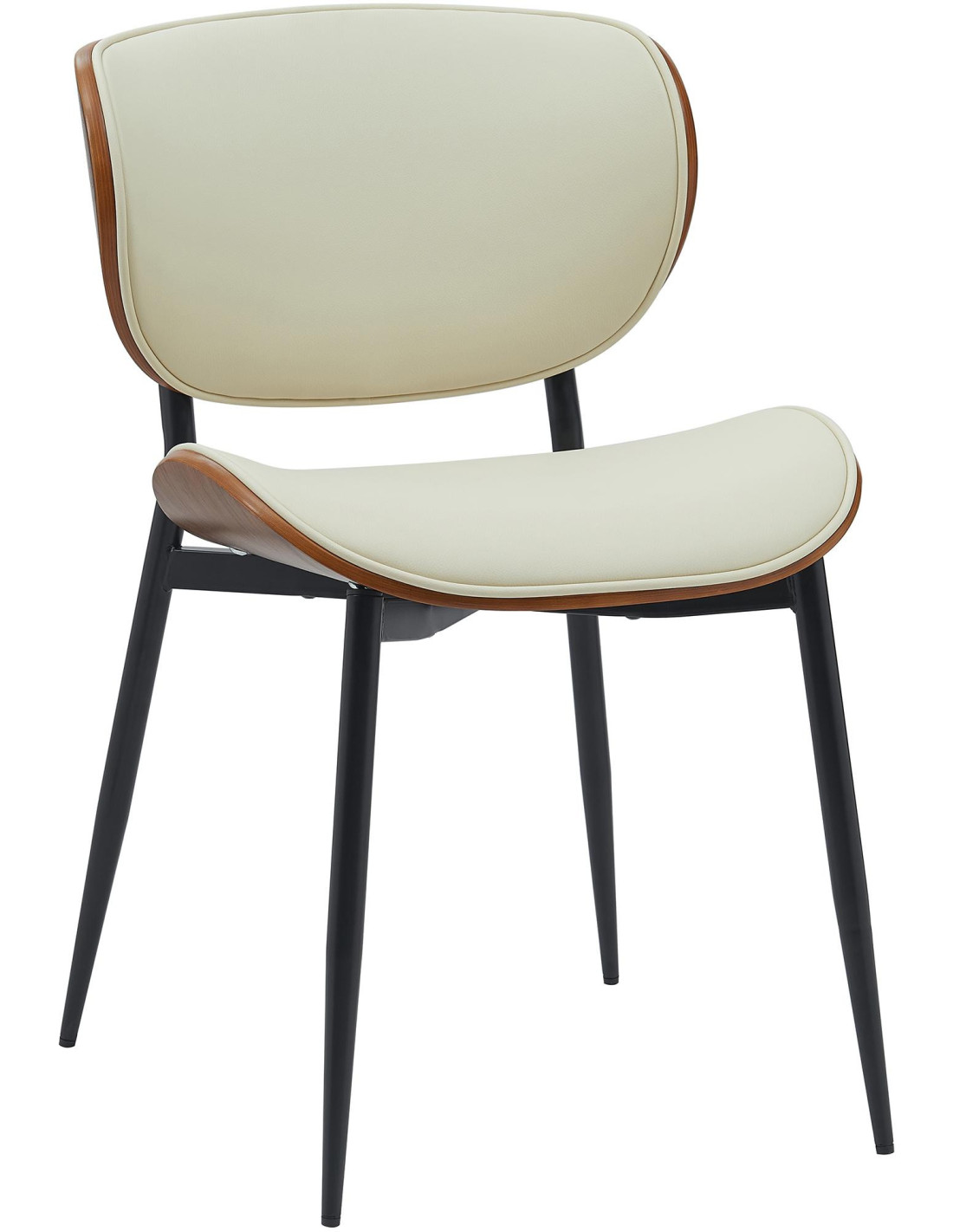 Chaise moderne haut de gamme en Polyuréthane Blanc crème Bois Marron noyer Métal Noir Algec - 1