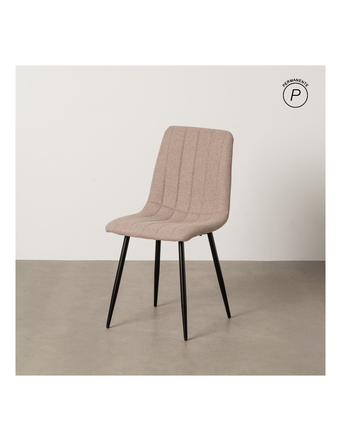 Chaise moderne haut de gamme Tissu Beige Matelassé Métal Noir Juvira (Lot de 4)