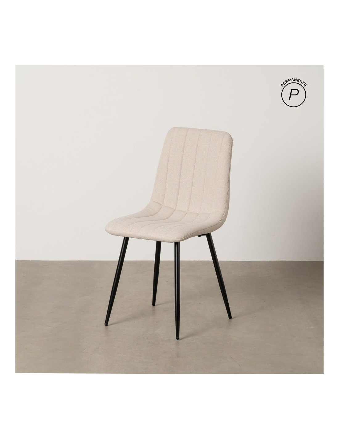 Chaise moderne haut de gamme Tissu Blanc crème Matelassé Métal Noir Juvira (Lot de 4)