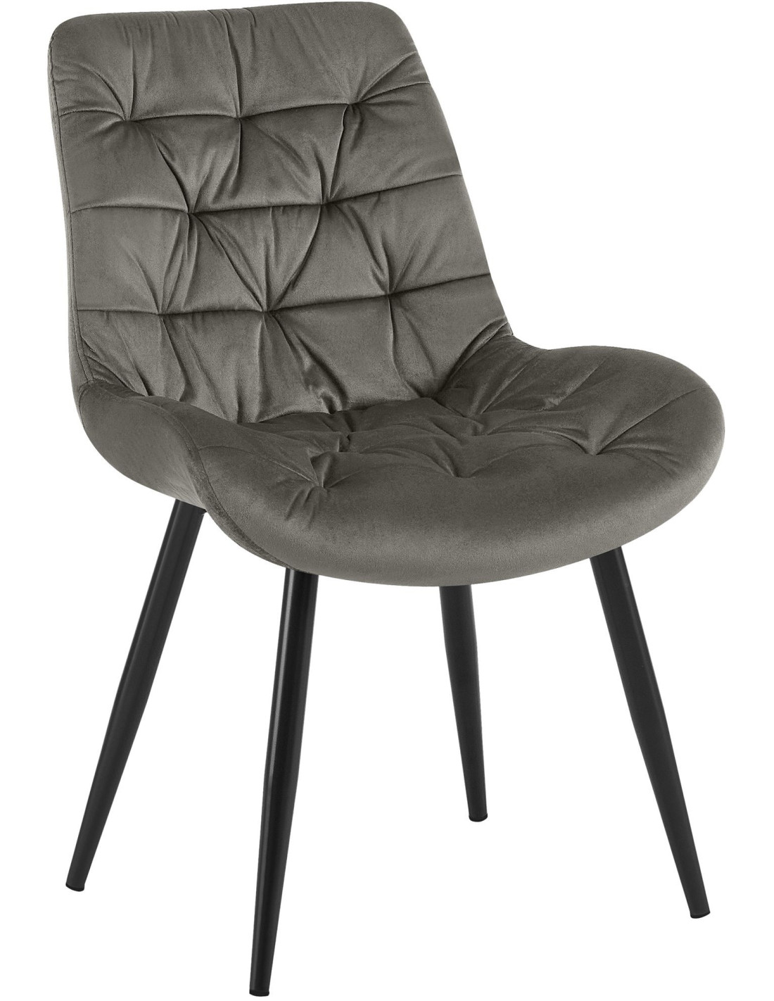 Chaise moderne rembourrée en Velours Anthracite Capitonné Métal Noir Mat Trogir