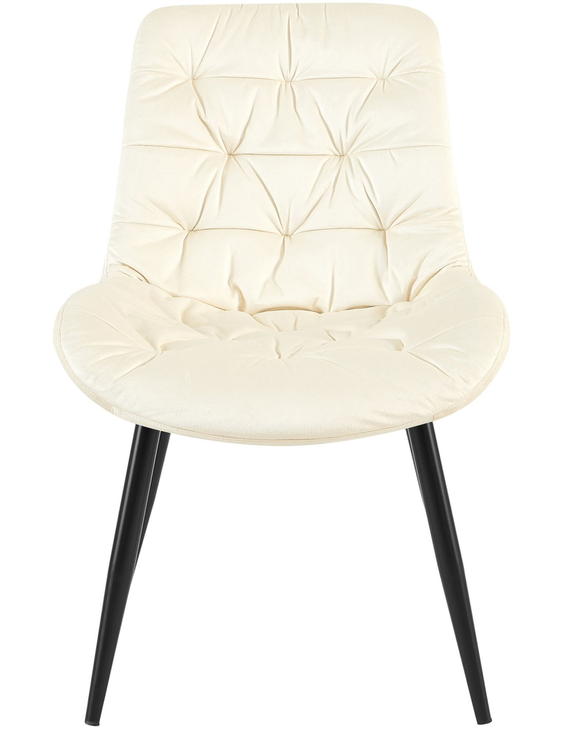 Chaise moderne rembourrée en Velours Blanc crème Capitonné Métal Noir Mat Trogir