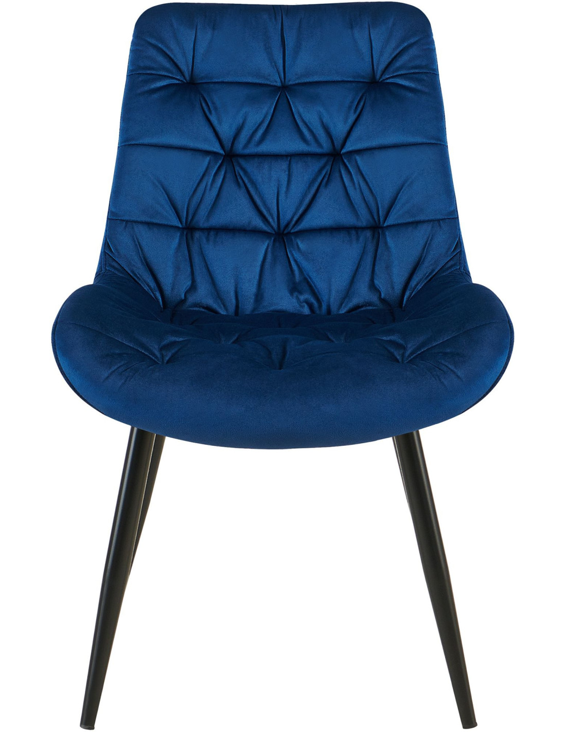 Chaise moderne rembourrée en Velours Bleu foncé Capitonné Métal Noir Mat Trogir