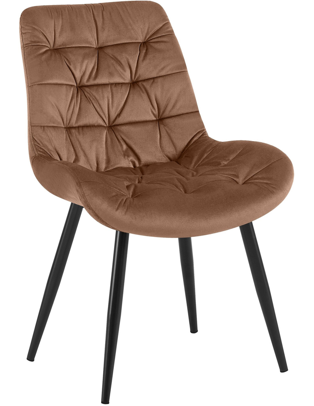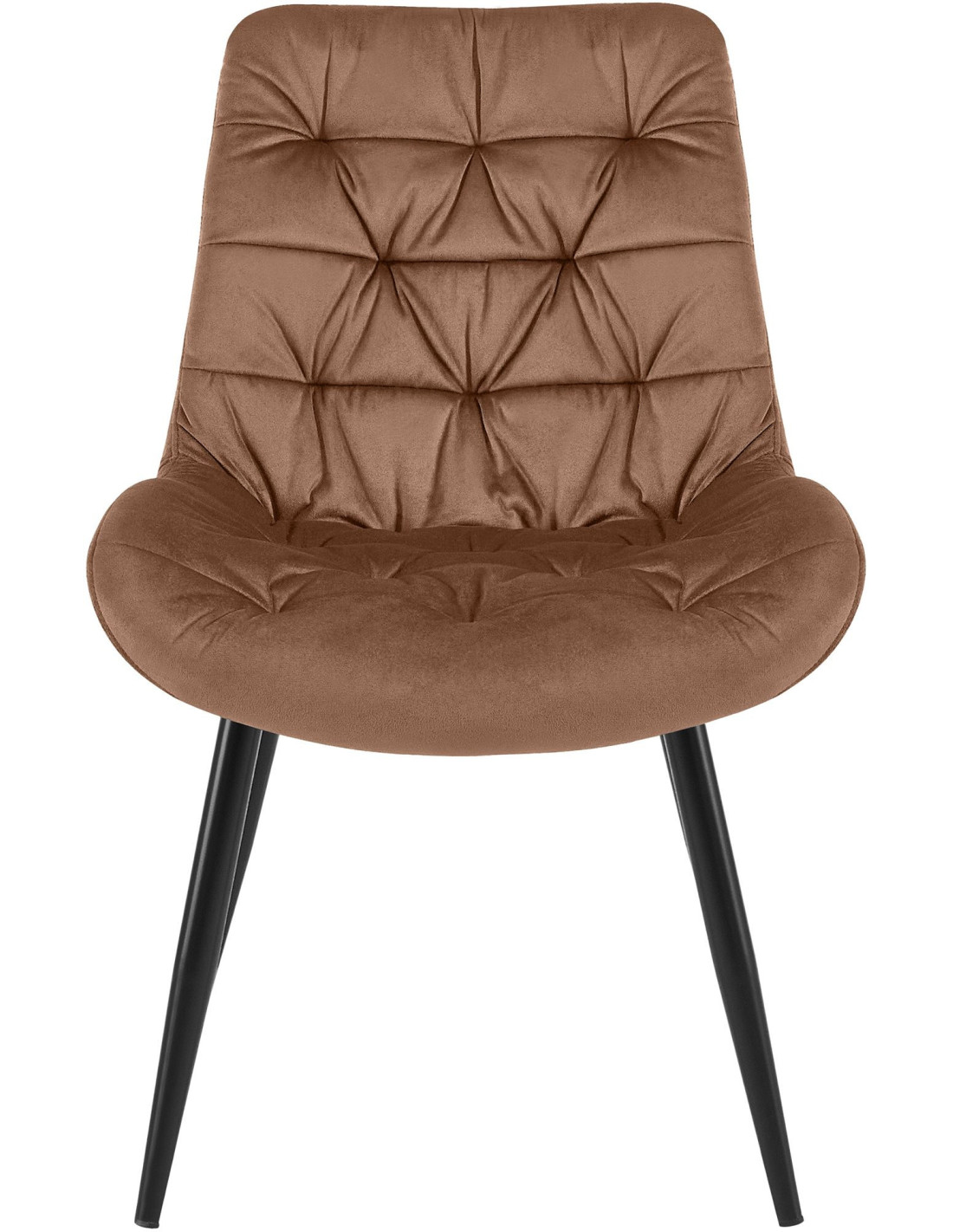 Chaise moderne rembourrée en Velours Marron Capitonné Métal Noir Mat Trogir