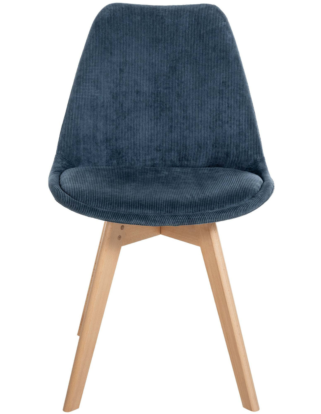 Chaise moderne scandinave en Velours côtelé Bleu foncé Bois de hêtre Naturel Floki
