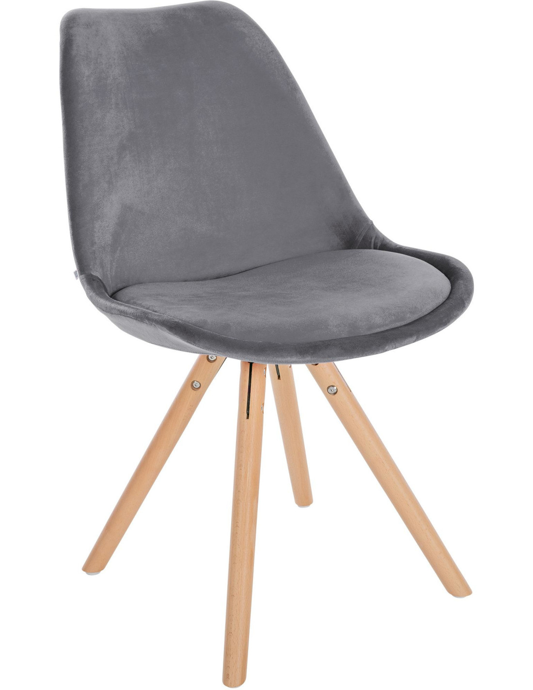 Chaise moderne scandinave en Velours Gris foncé Bois Naturel Kalia