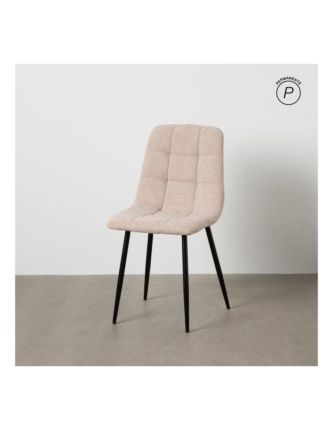 Chaise moderne scandinave Tissu Beige Matelassé Métal Noir Filina (Lot de 4) - 1