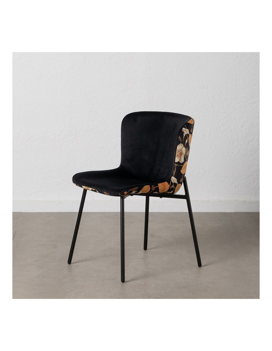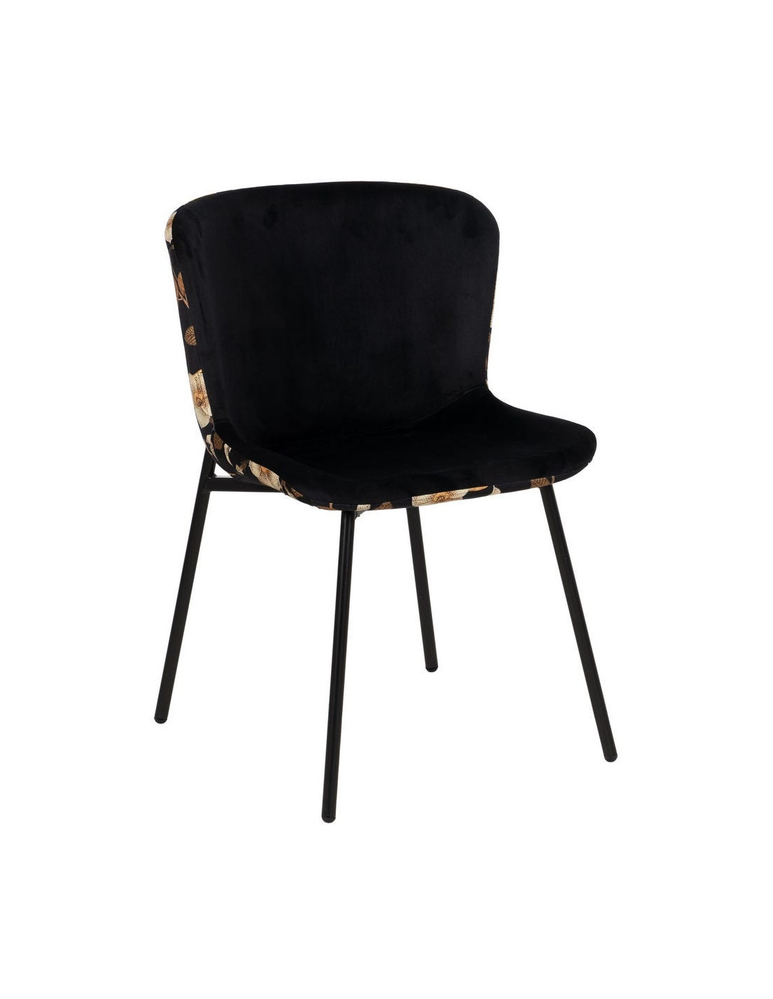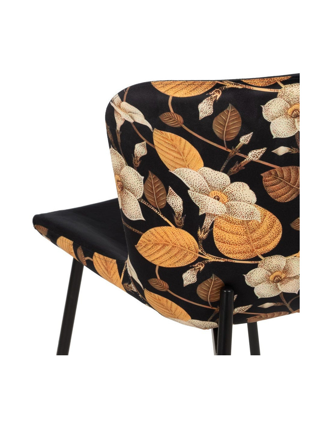 Chaise originale dos motif fleurs en Tissu Métal Noir Nerea (Lot de 4) - 1