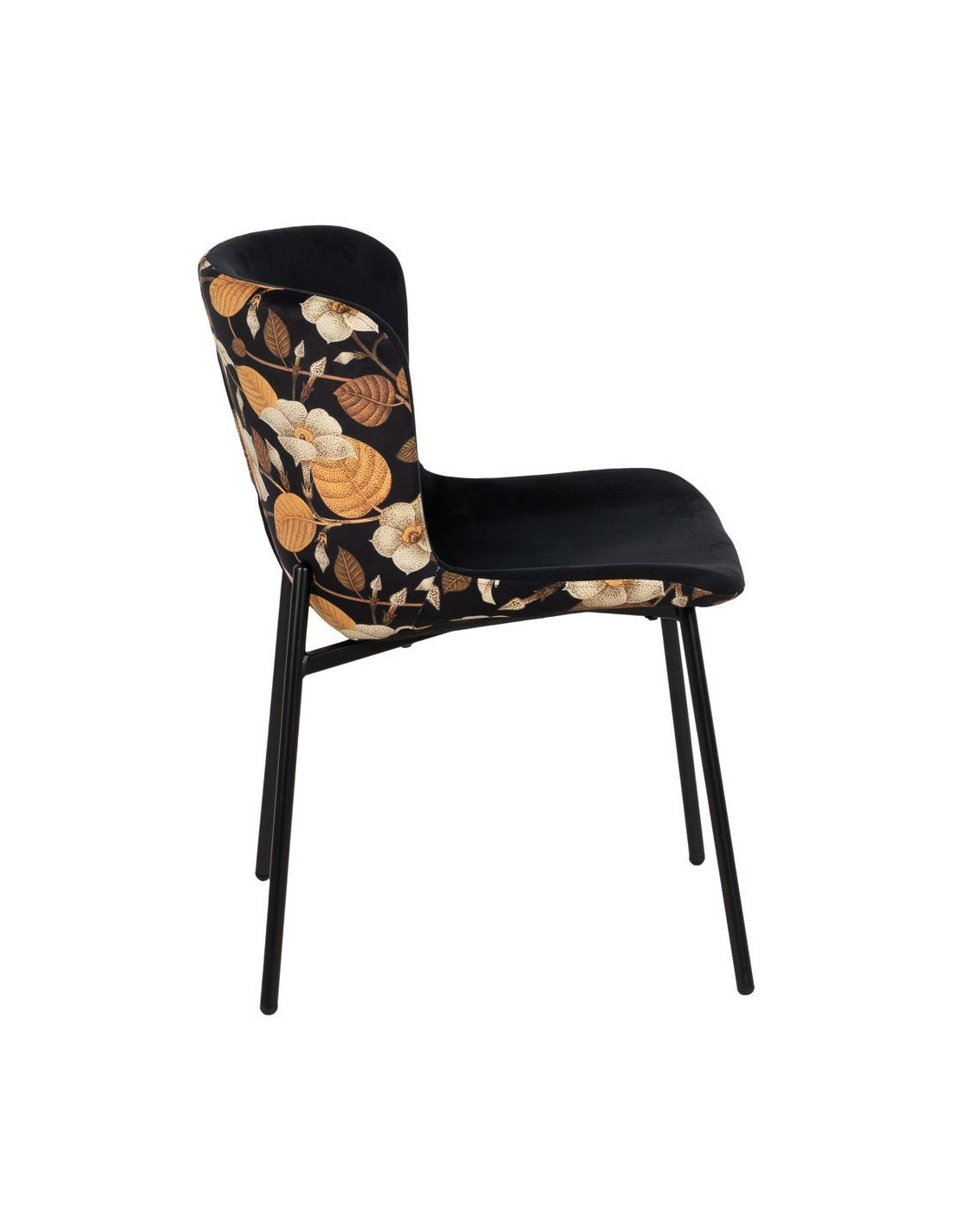 Chaise originale dos motif fleurs en Tissu Métal Noir Nerea (Lot de 4)