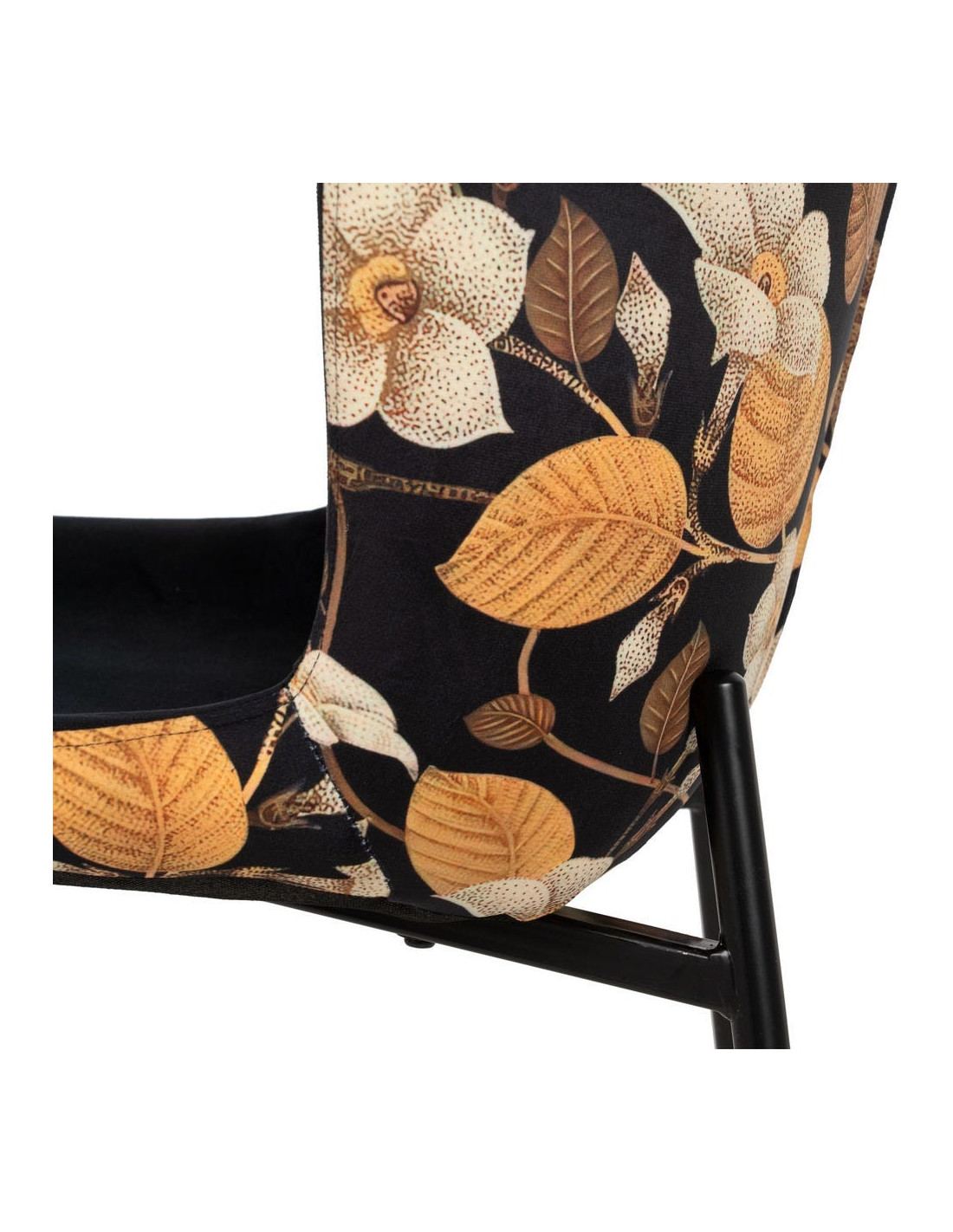 Chaise originale dos motif fleurs en Tissu Métal Noir Nerea (Lot de 4) - 8