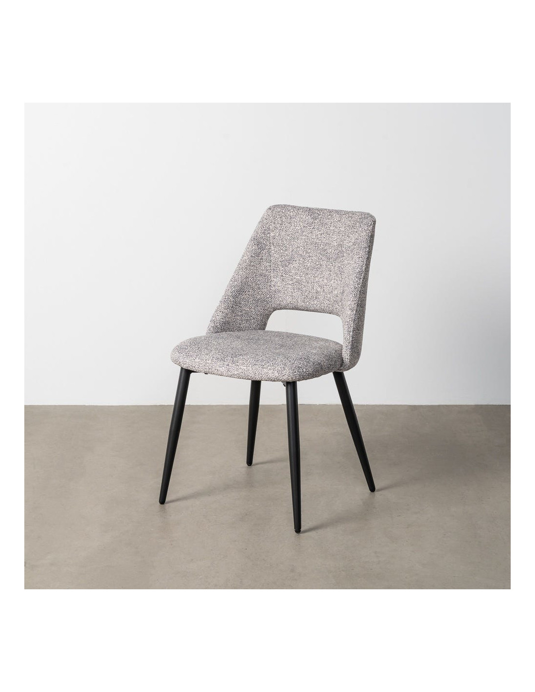 Chaise rétro chic en Tissu Gris blanc Chiné Métal Noir Norian (Lot de 2) - 1